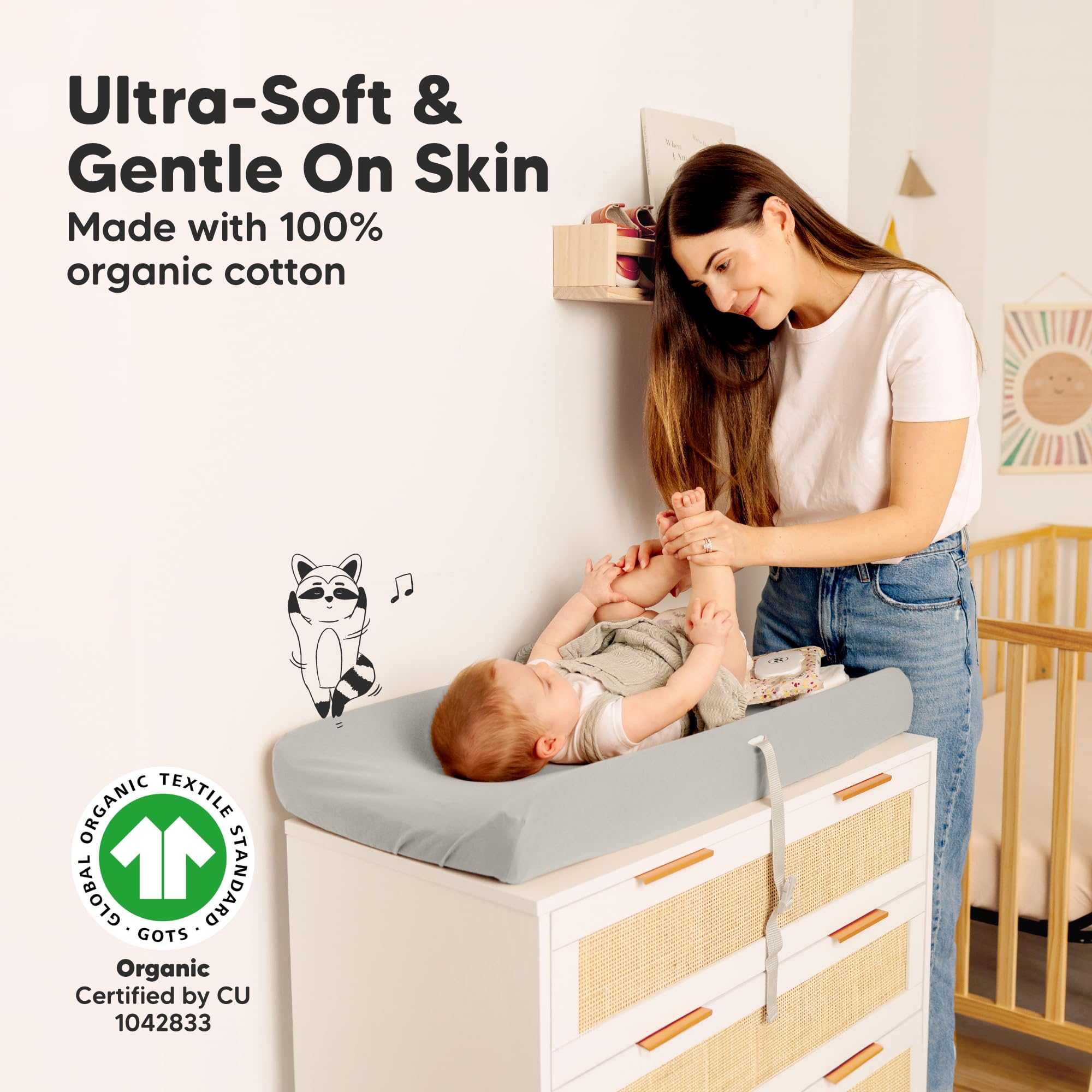 Ultra Softness - Made from 100% organic cotton (GOTS-Certified CU 1042833), our Soothe Changing Pad Covers are softer than muslin, more breathable, & gentle on baby’s skin, providing a soothing experience on the changing table during diaper changes.