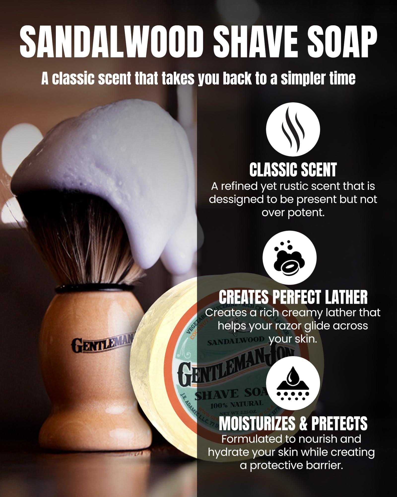 SANDALWOOD SHAVE SOAP: Our set includes sandalwood shaving soap that is formulated with a blend of natural oils and ingredients that nourish and protect the skin. It helps soothe the skin and prevent irritation and razor burn. When combined with water and the shaving hair brush, the soap creates a thick, creamy lather that helps to soften the hair and moisturize the skin for a smooth, comfortable shave.