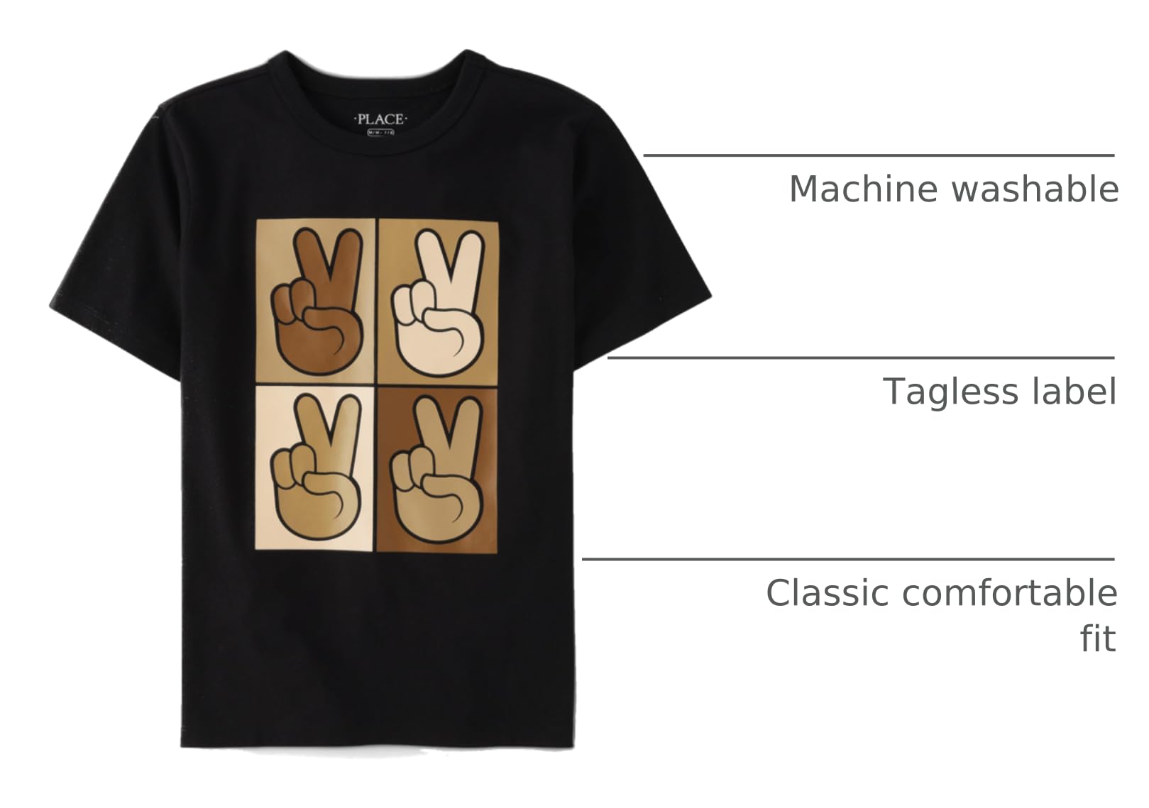 DESIGN β Features short sleeves, rib-knit crew neck, tagless label and peace signs graphic design at front