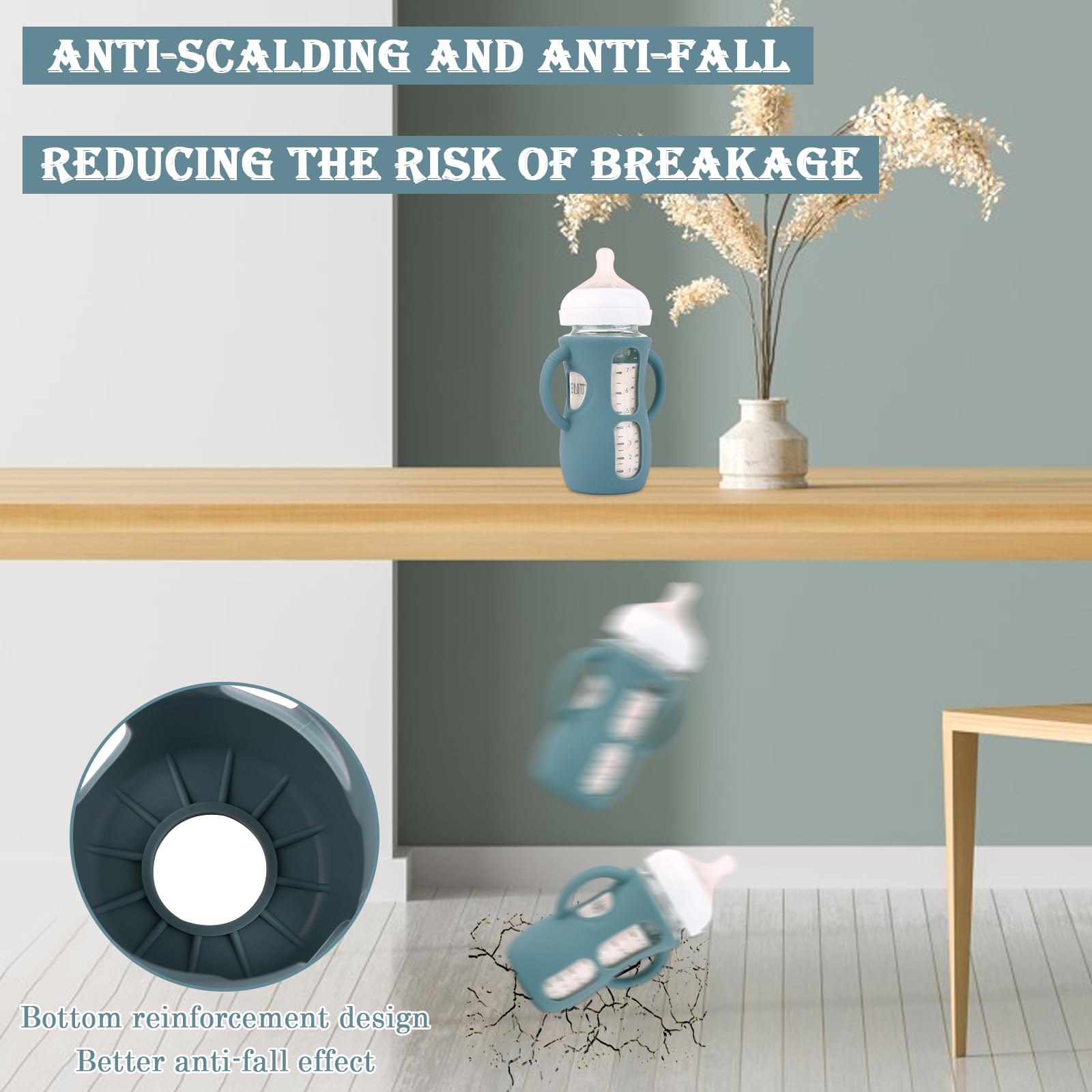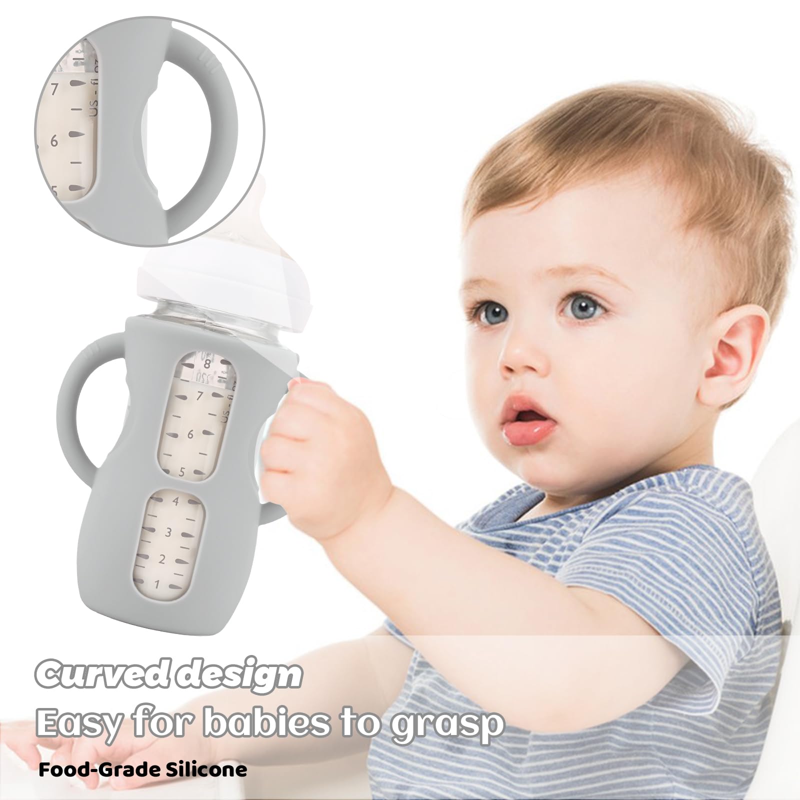 Silicone Bottle Sleeves with Handle Design: Smooth and soft, helps to exercise baby grip. The baby bottle handle has good flexibility and anti twist ability, even if the baby pulls and twists the handle while learning to grip, it can always return to its original good shape.