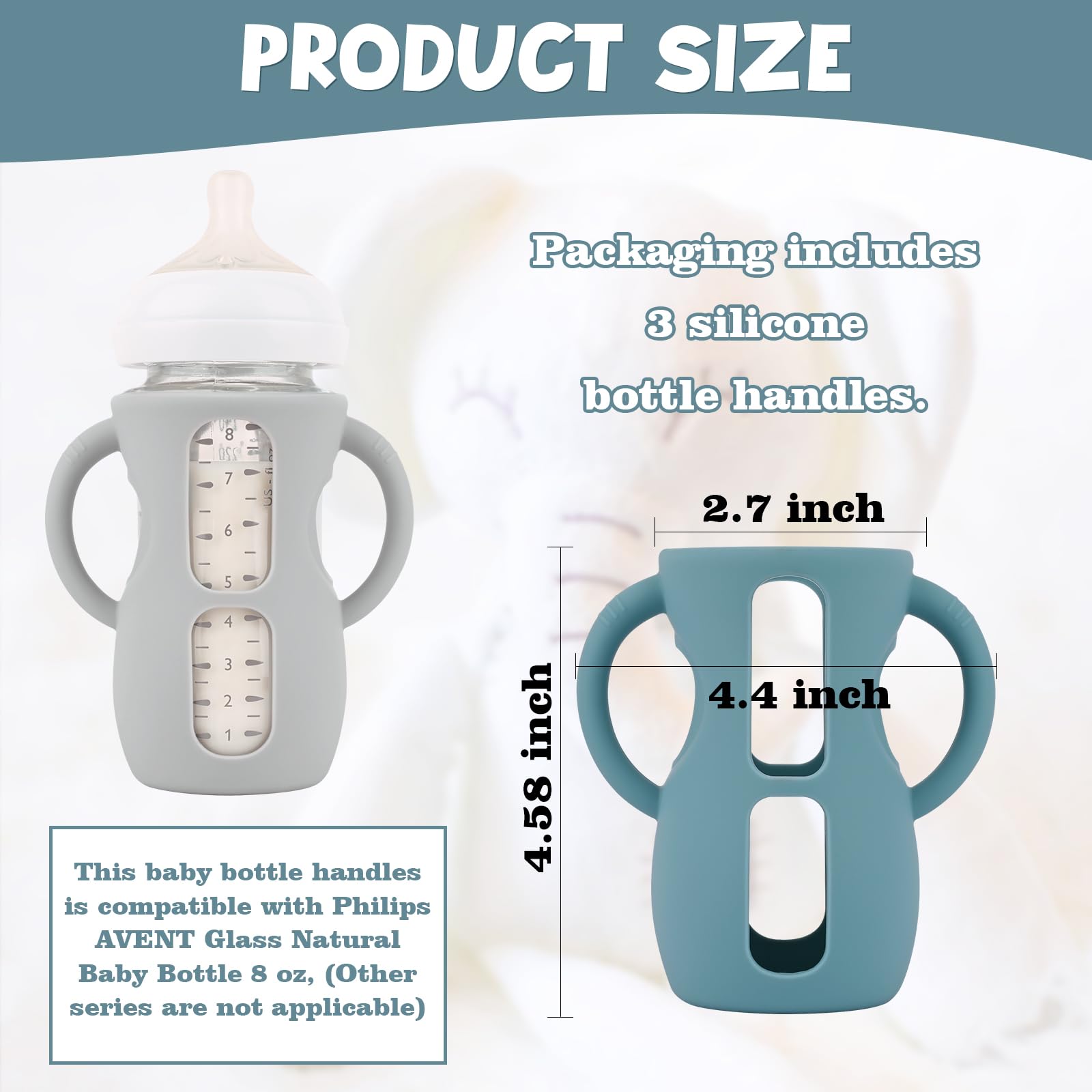 Tip: This baby bottle sleeve is compatible with Philips AVENT Glass Natural Baby Bottle 8 oz, (Other series products cannot be adapted)