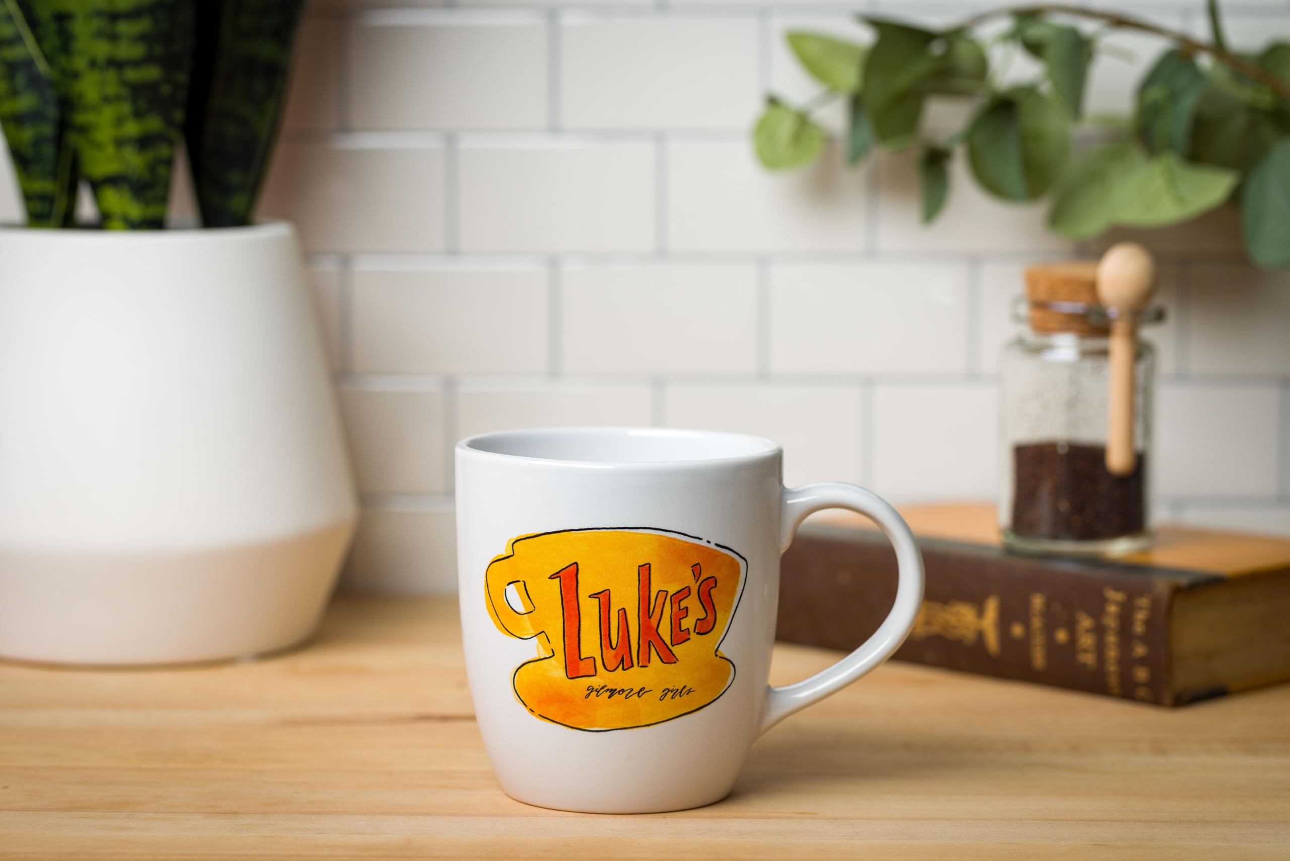 CERAMIC MUG: Enjoy your morning beverage in this fun Gilmore Girls 18oz. Ceramic Mug featuring the classic Luke's Coffee logo against a white background
