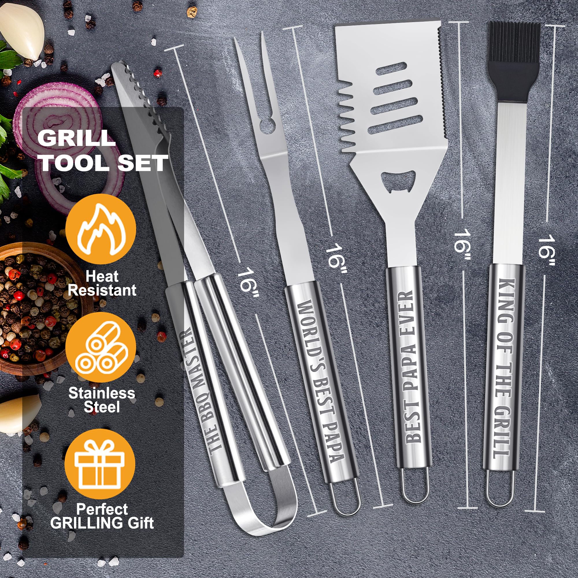 Perfect Gift for Papa Who is Grill Master - This classic stainless steel barbecue set is the perfect gift for Papa on fathers day. Whether for an anniversary, birthday celebration, housewarming, Christmas, Father’s Day, or simply to express your gratitude, it is the ideal present for someone who loves to barbecue. Made from carefully selected materials and designed with practicality in mind, our barbecue tools are durable and ensure that every cooking experience is easy and enjoyable.