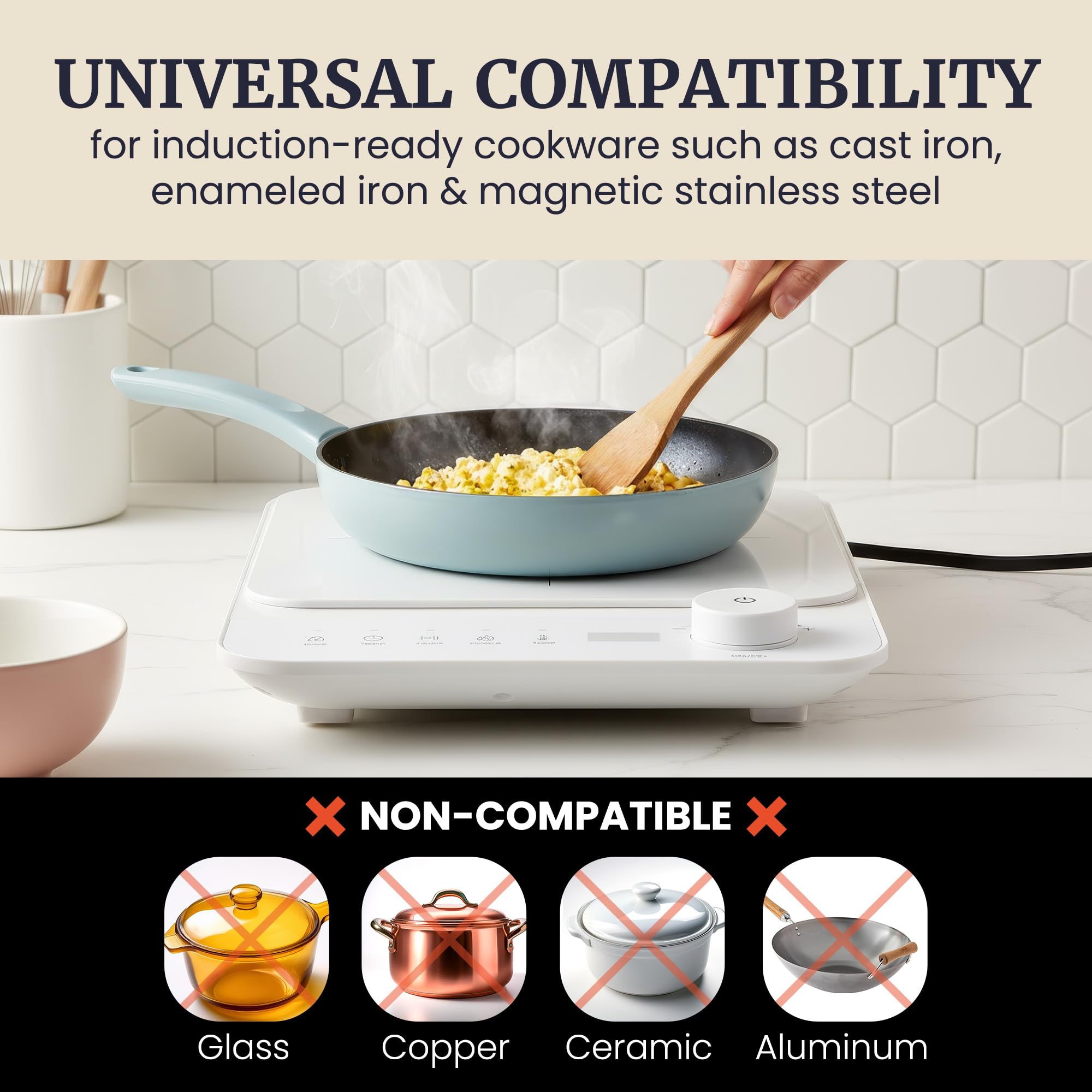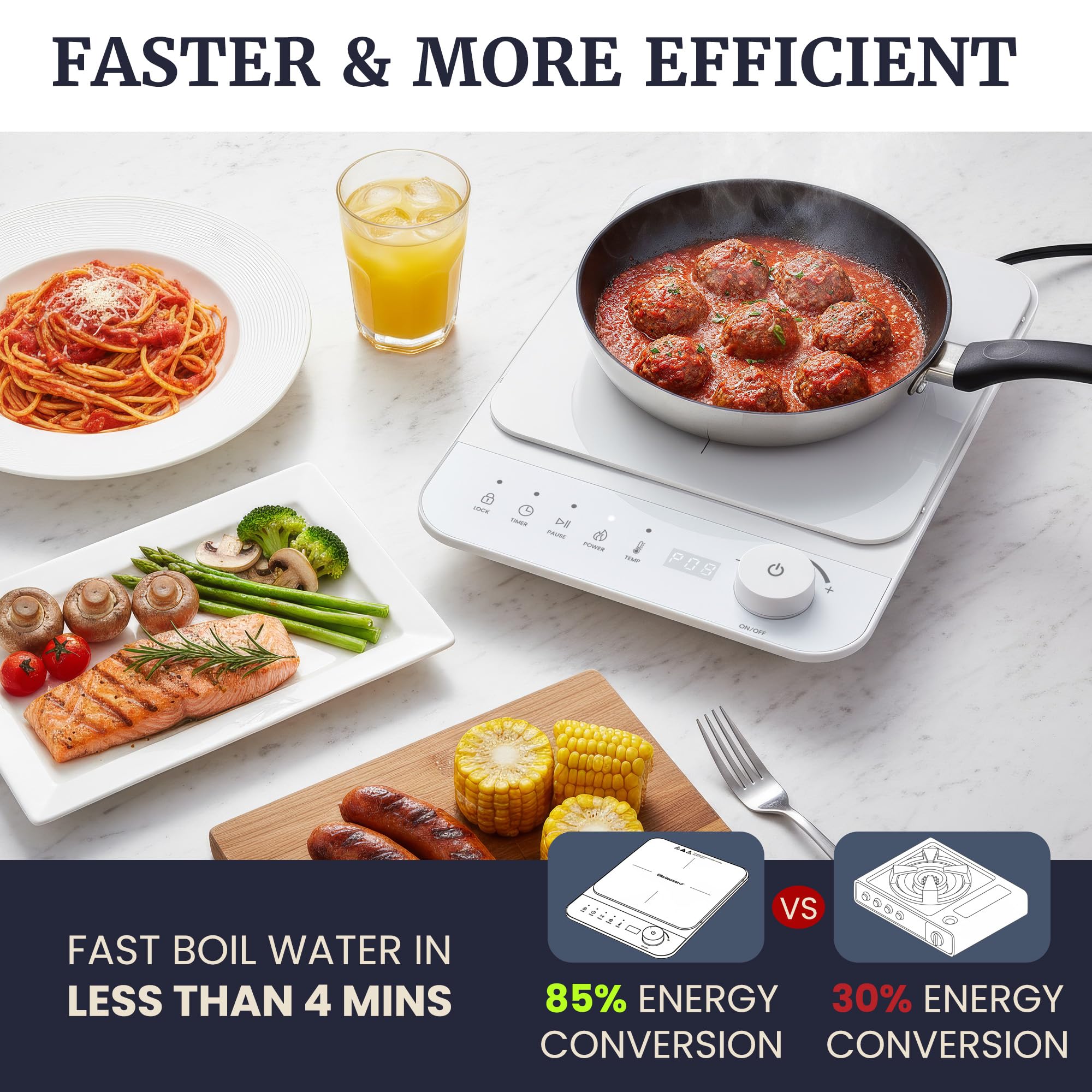 FAST HEATING & ENERGY EFFICIENT: Experience faster cooking with induction technology that transfers over 85% of its electromagnetic energy directly to your cookware. This means quicker heating, even cooking, and less wasted energy—no hot or cold spots!