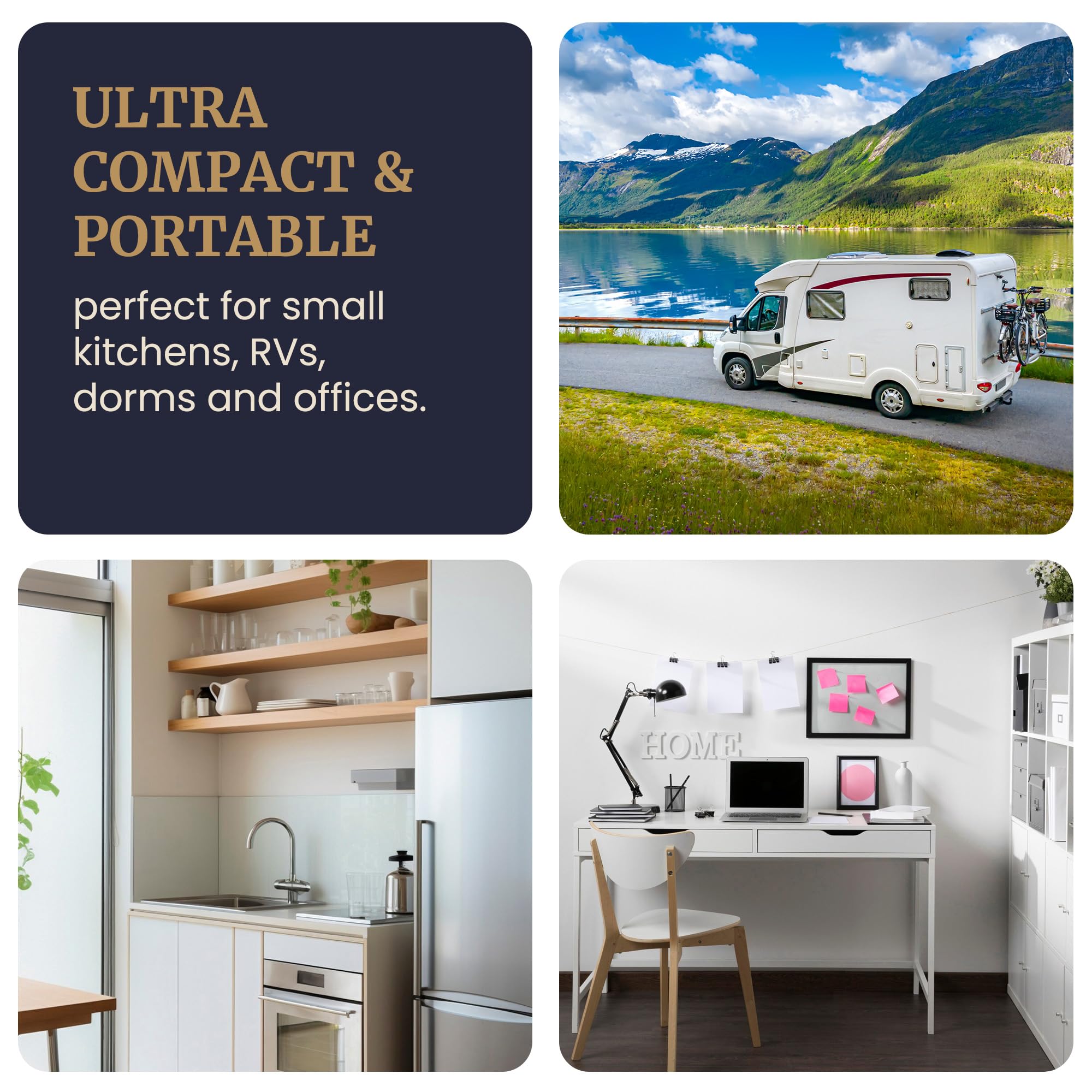 SLIM DESIGN: Offers a low profile for stability, compact storage, and ease of use—perfect for kitchens, dorms, RVs, or any space where efficiency matters. The sleek form easily fits into tight spots or cabinets when not in use.