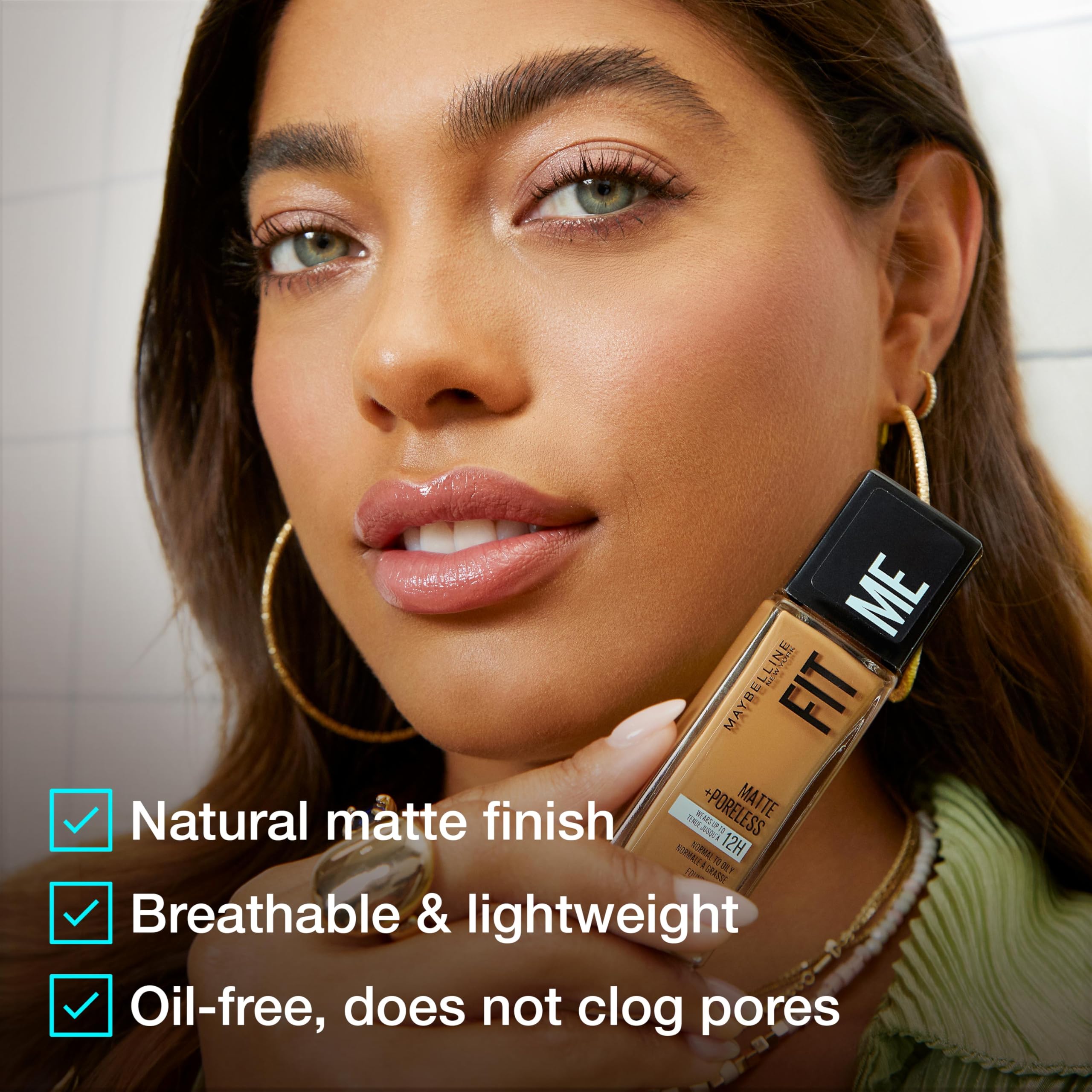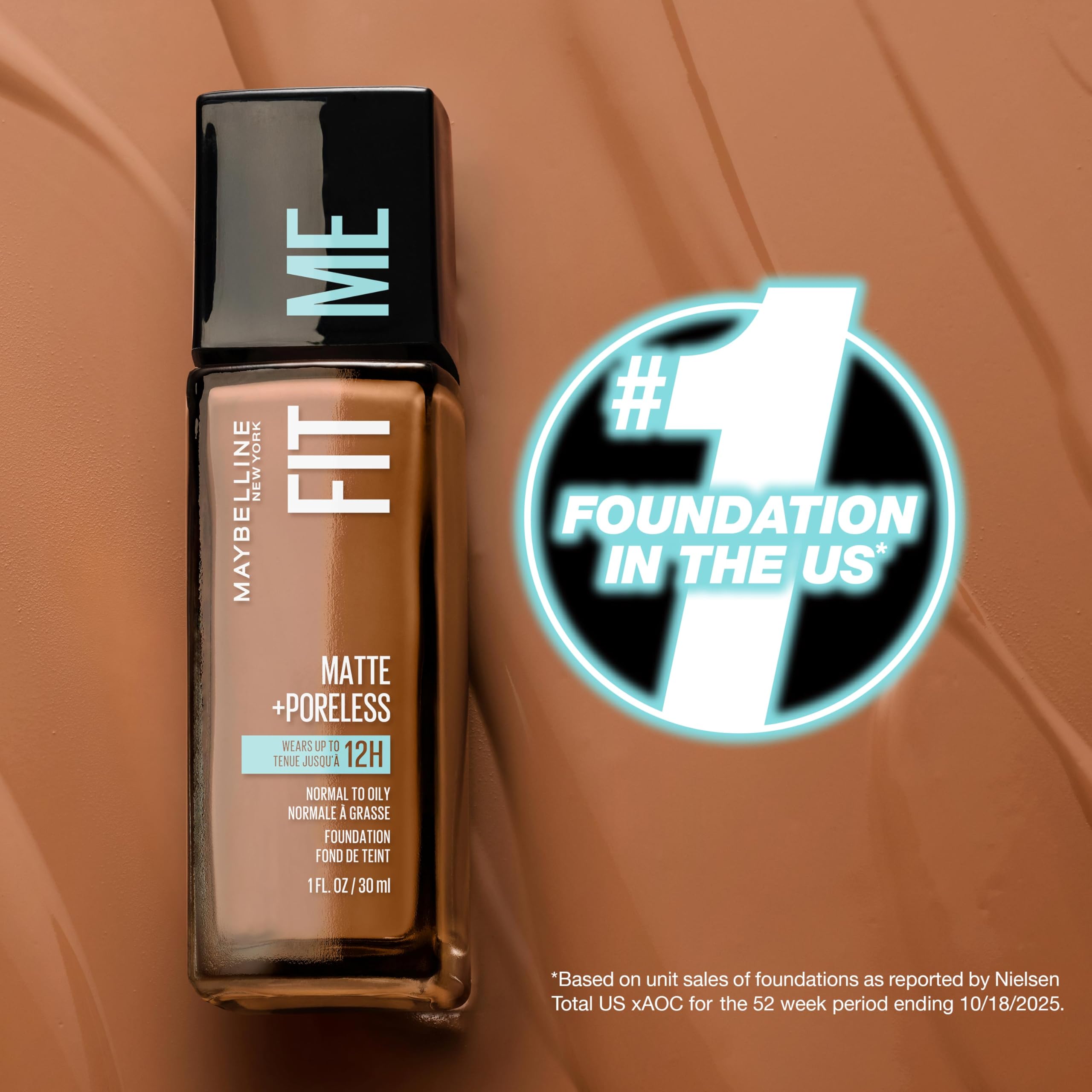 MAYBELLINE Makeup Fit Me Matte + Poreless Liquid Foundation Makeup. Apply foundation onto skin and blend with fingertips or an applicator. Americas #1 Foundation**LOreal calculation based on data reported by Nielsen through its Scantrack Service for the Foundation category for the 52-week period ending February 9, 2019, for the US xAOC market according to LOreals custom product hierarchy. The Nielsen Company. By MAYBELLINE By Maybelline