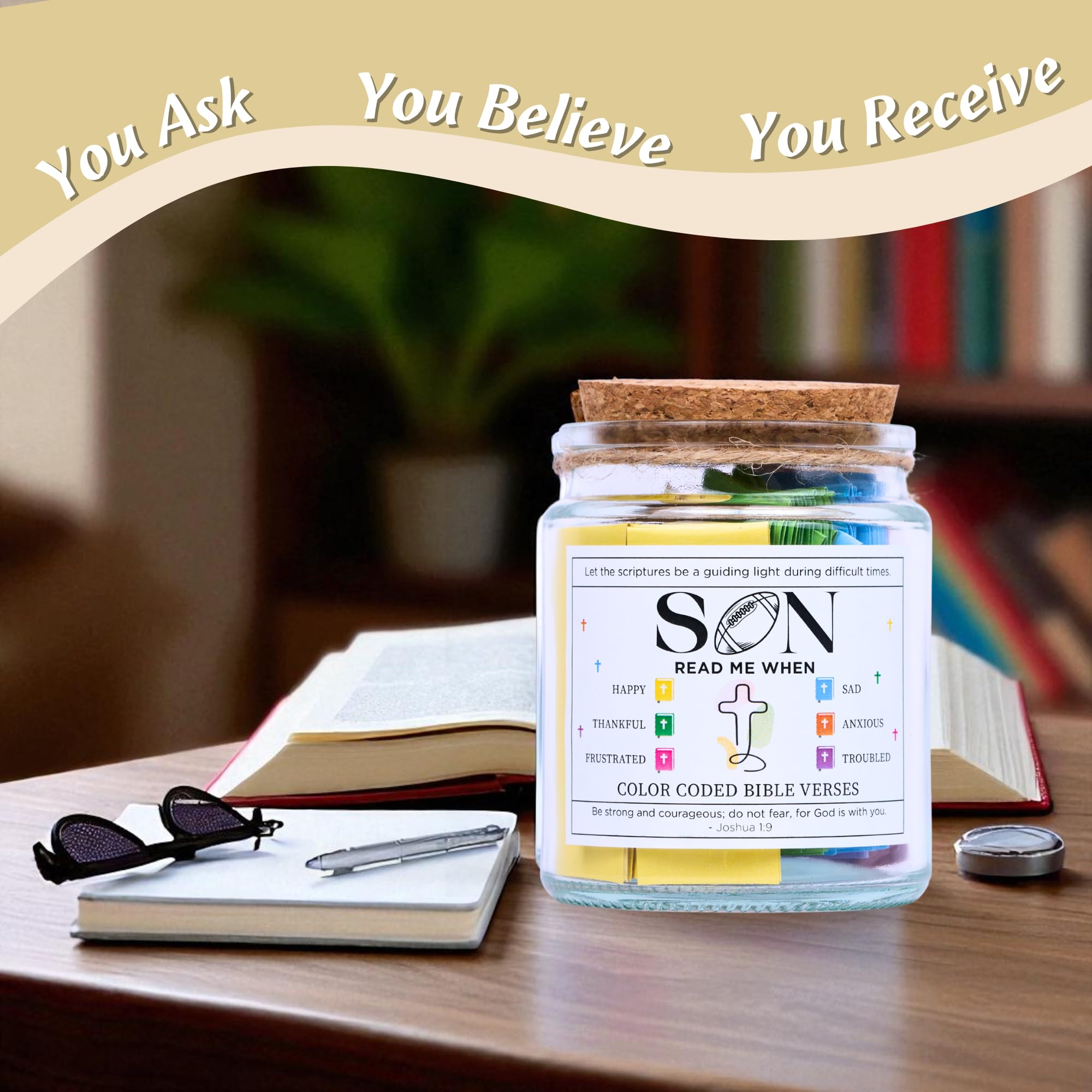 🏈 BIBLE VERSE JAR FOR SON – Equip your son for life's big game! Designed specifically for the young man finding his path, this "Read Me When" jar is his ultimate spiritual playbook. Whether he is facing pressure on the field, in the classroom, or in his career, he can pull a scroll to find instant strength. It’s a powerful way to tell him: "Be strong and courageous, for God (and your parents!) are always with you."