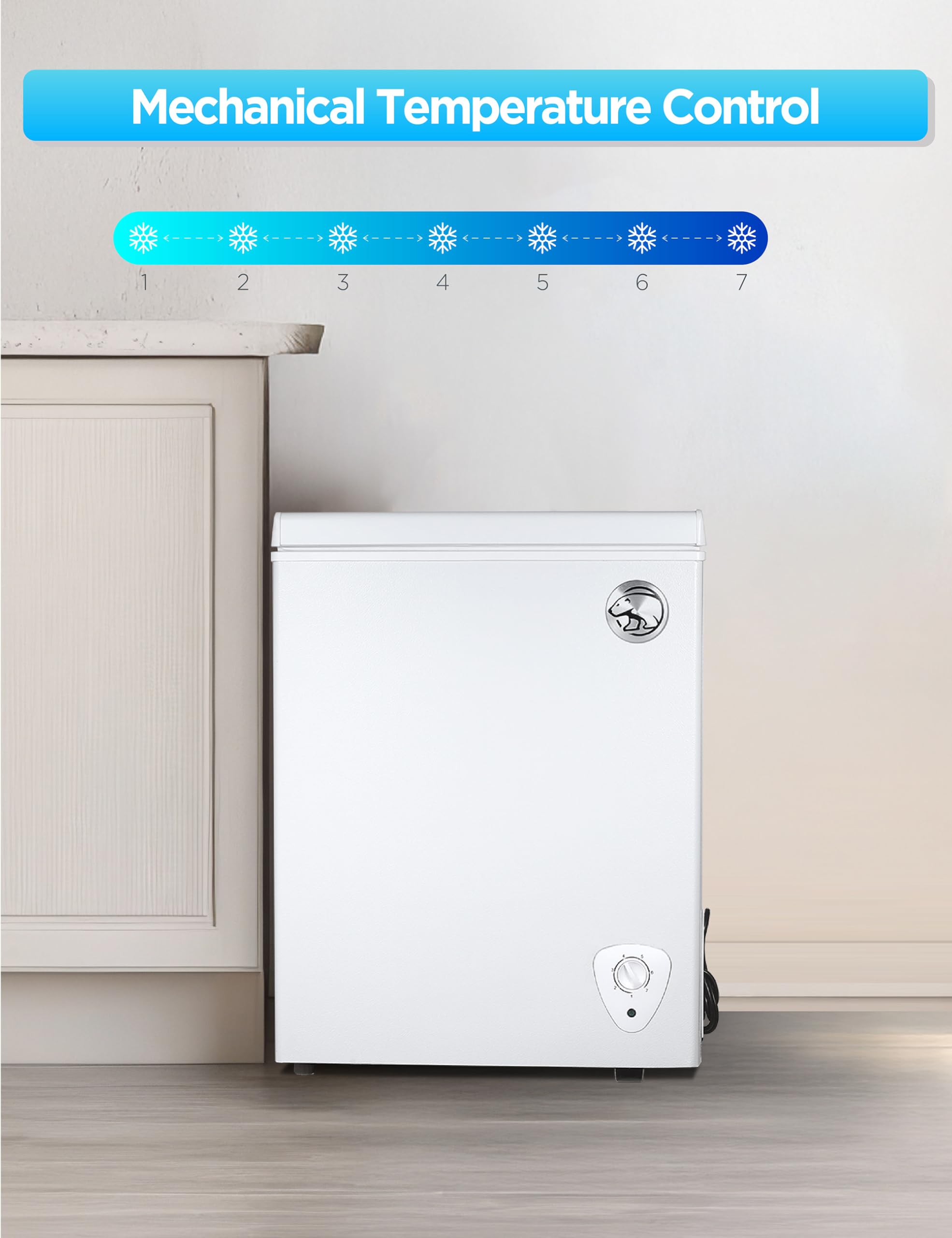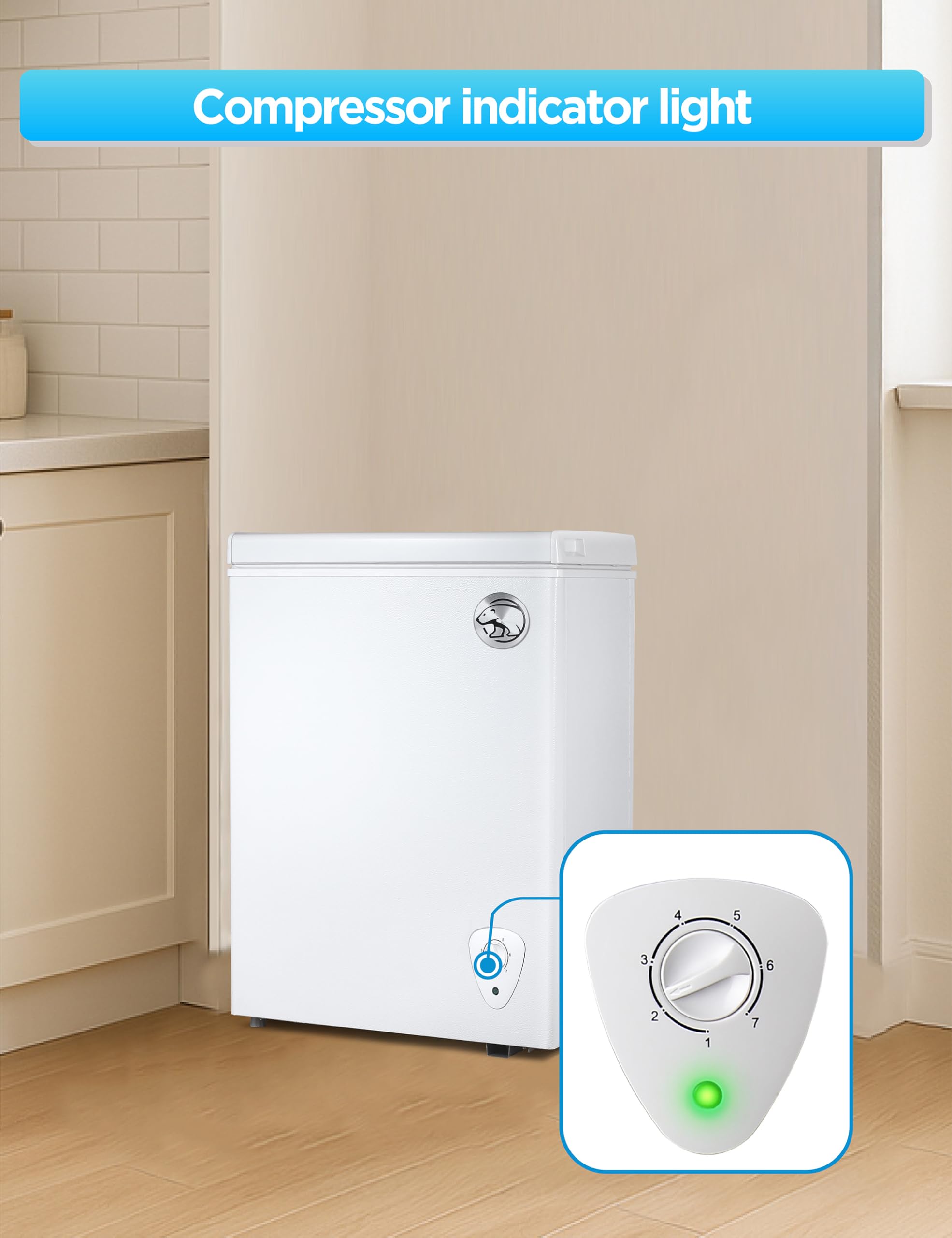 Mechanical Temperature Control: Our chest freezers include mechanical temperature control on the exterior with a compressor indicator allowing precise adjustments without opening the freezer