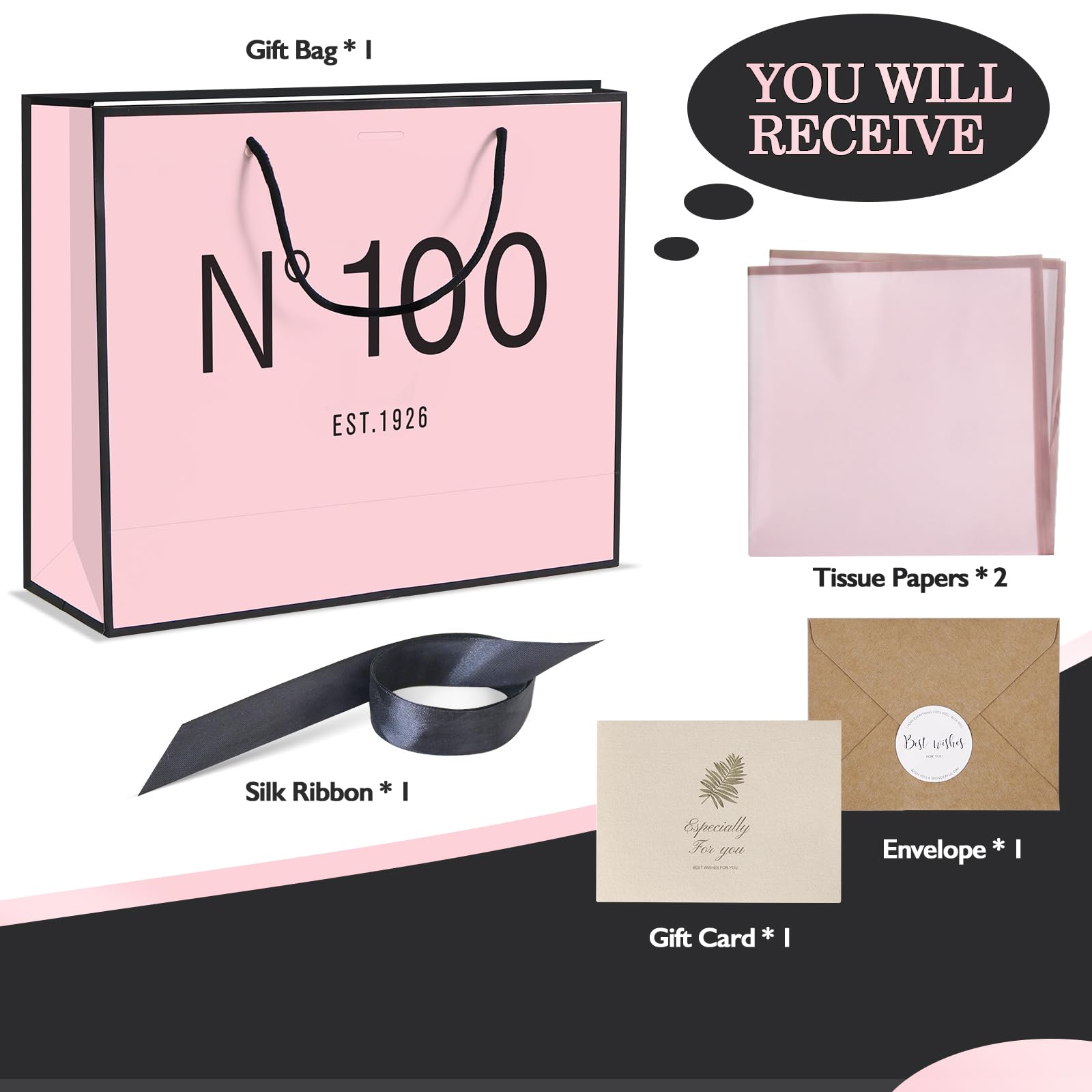 13" Birthday Gift Bag with Card Envelope Sticker Bow Ribbon and Tissue papers for Women Girls QLSKO Design with Handles,13th-100th