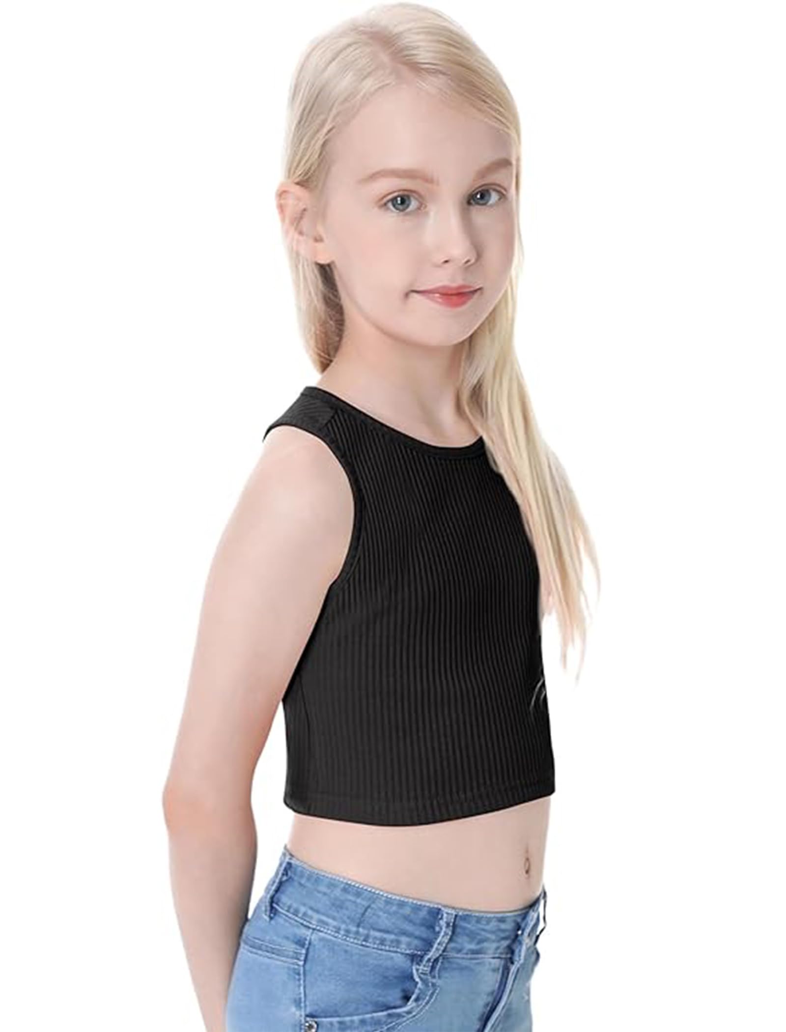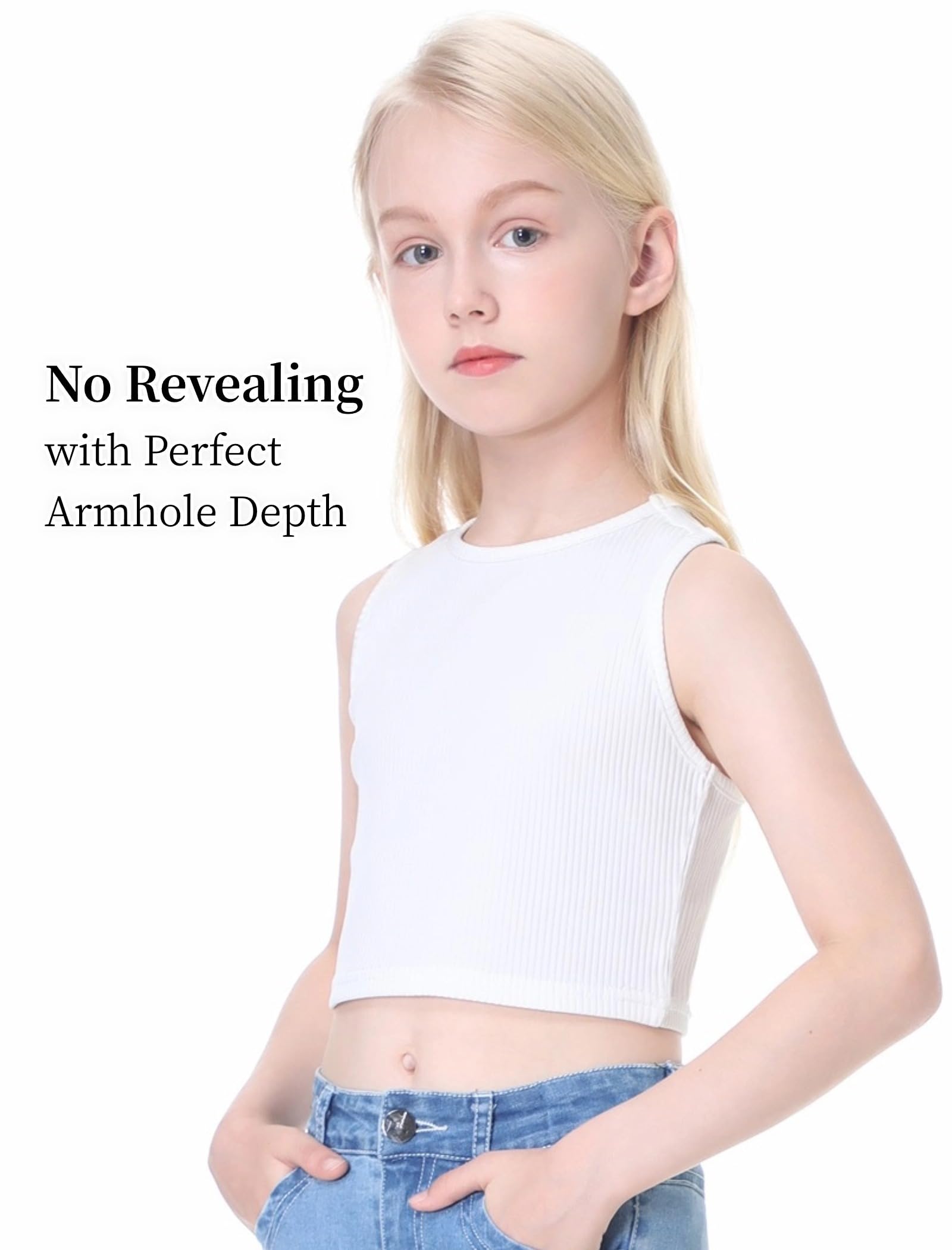 The cropped length sits at her waist, and the armhole cut is perfect without revealing.