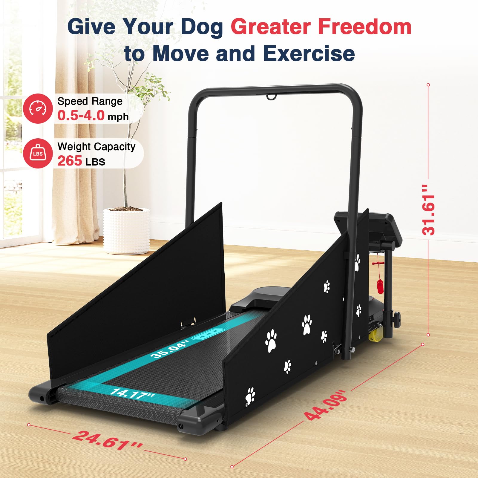 【Weather-Proof, Injury-Free Exercise】 - With this pet treadmill for dogs, your furry friend can steer clear of busy or unsafe areas, greatly lowering the chances of injury or getting lost. Rain, snow, or heat? No problem! Your pup can enjoy consistent indoor workouts all year round.