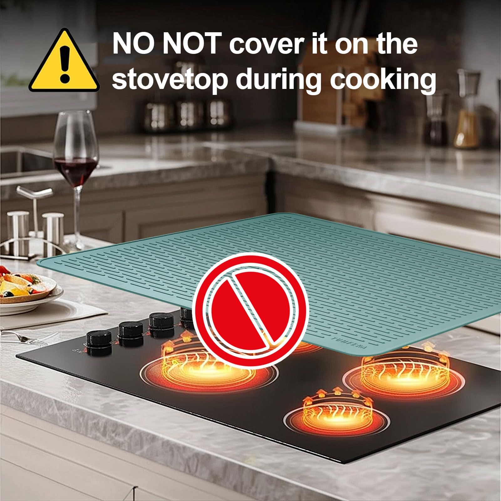 Anti Scalding Silicone Mat: Our glass-top stove cover doubles as a silicone trivet mat that can hold hot pots and pans. Heat resistant up to 400°F, its raised wide ridges separate the hot pot from the table and protect your kitchen surfaces from scalding. Attention!*Do NOT put the electric cooktop cover on the electric range while it's ON to prevent damage.