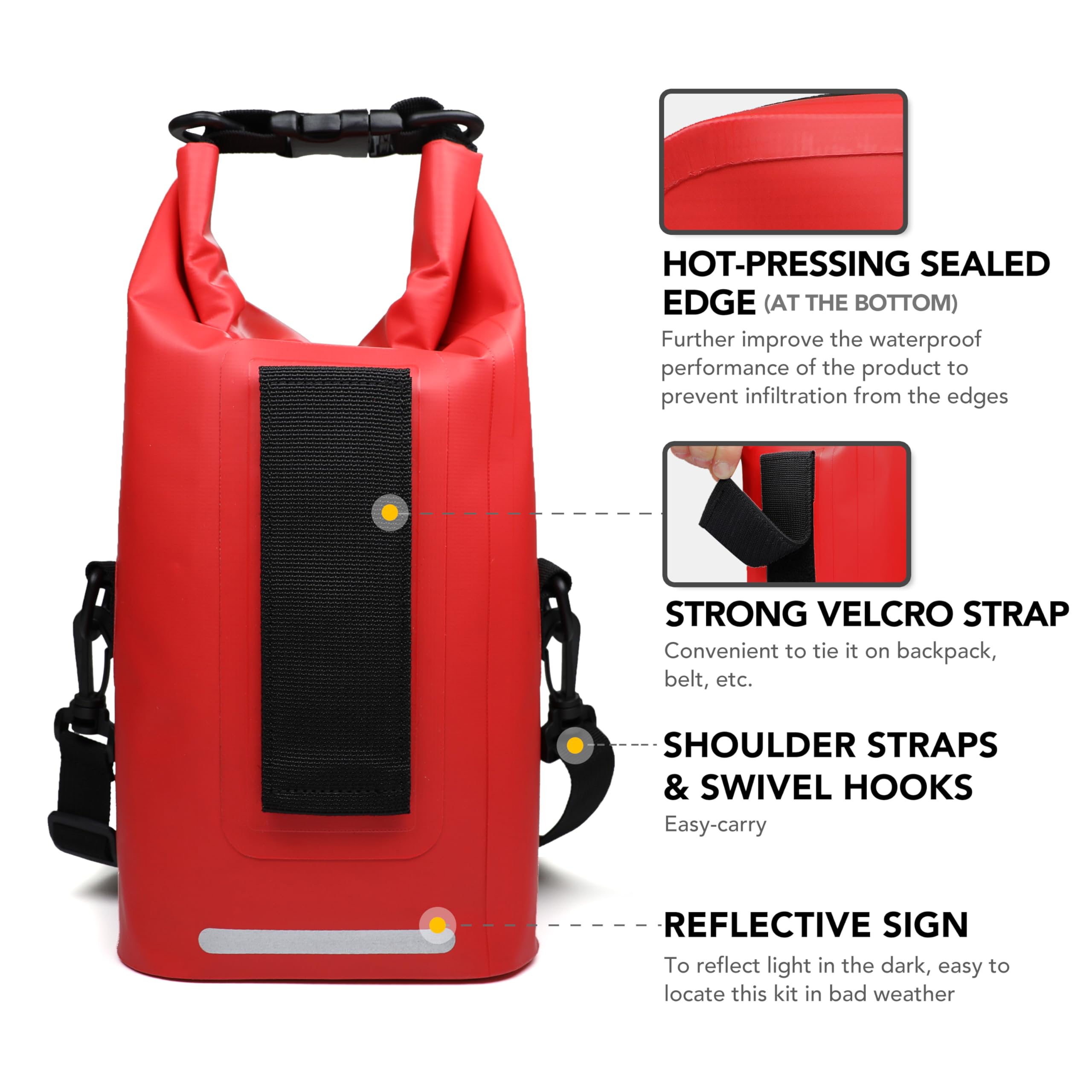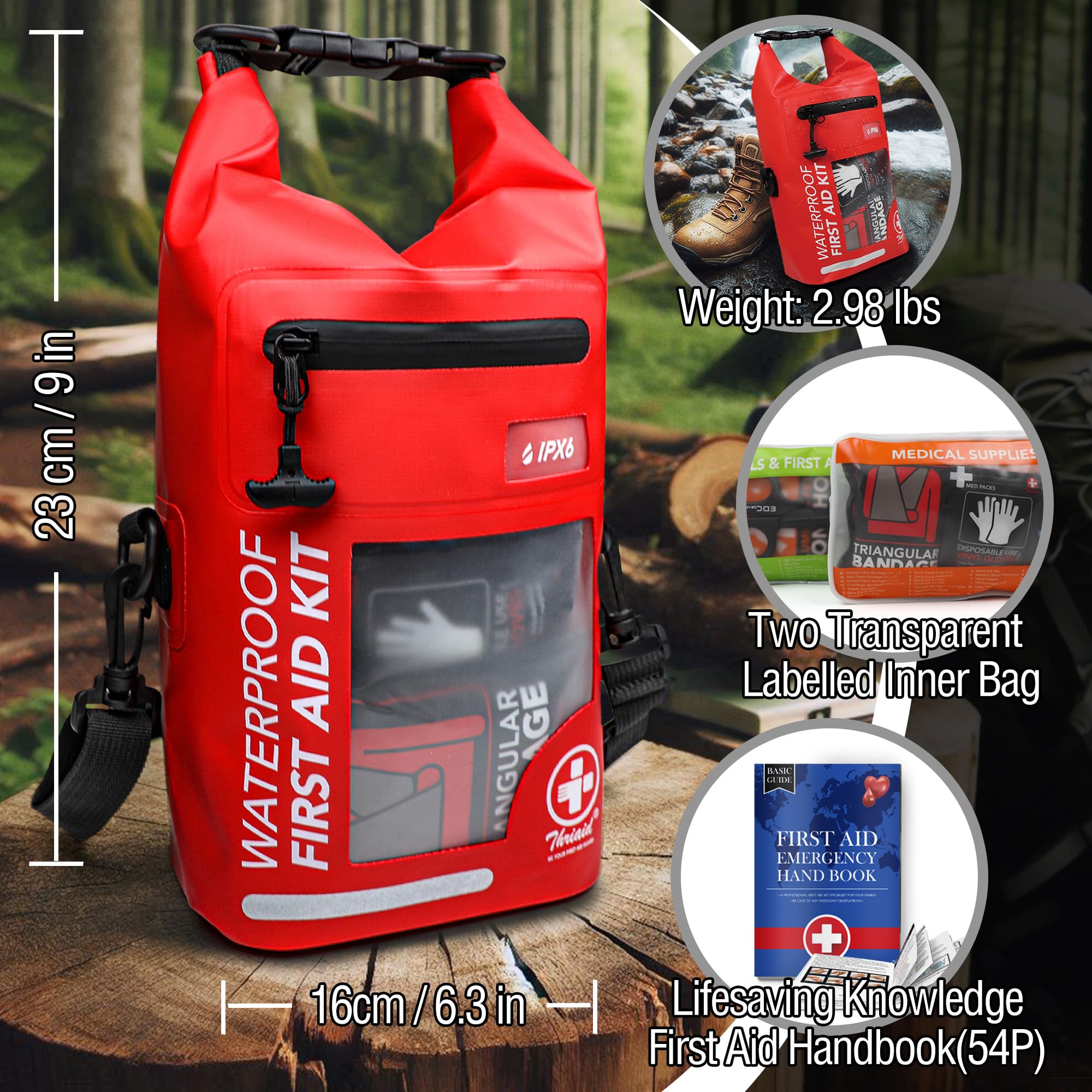 BORN FOR FIRST AID ▶ The kit features 6.3”(L) x 4.7”(W) x 9”(H) size, weight 2.36 lbs. Reflective strips on both sides reflect light in the dark, easy to locate in bad weather. Transparent window increases visibility and the zipper pocket above it increases the storage space for commonly used items. Hang it on backpack, bicycle or vehicle with velcro strap.