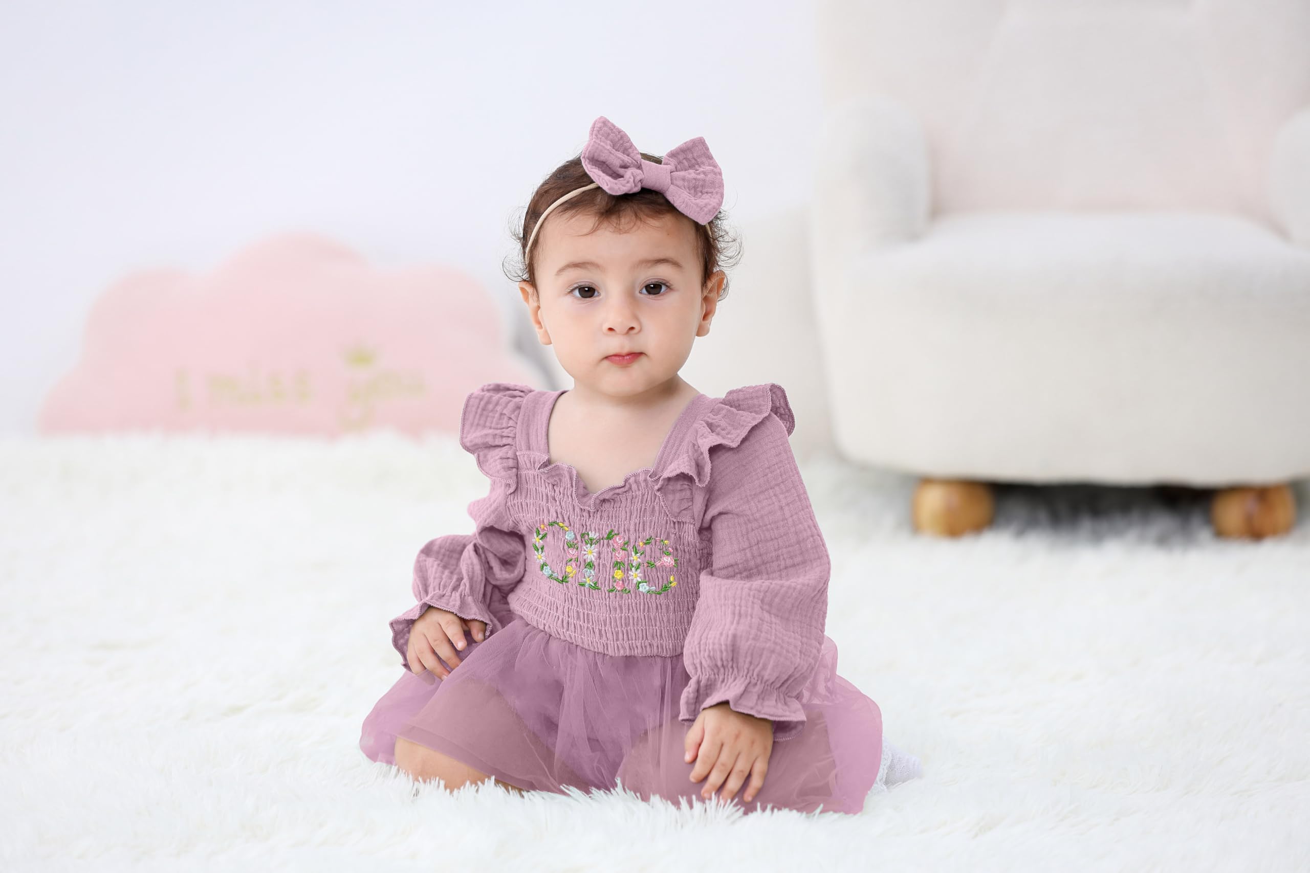 Occassion: Baby girls princess 1st birthday clothes is a best choice for 1st birthday party. Baby rompers girl tutu dress suitable for many occasions, such casual, family parties, one birthday party, baby photo, baby shower gifts, festival, fall/winter daily life etc.