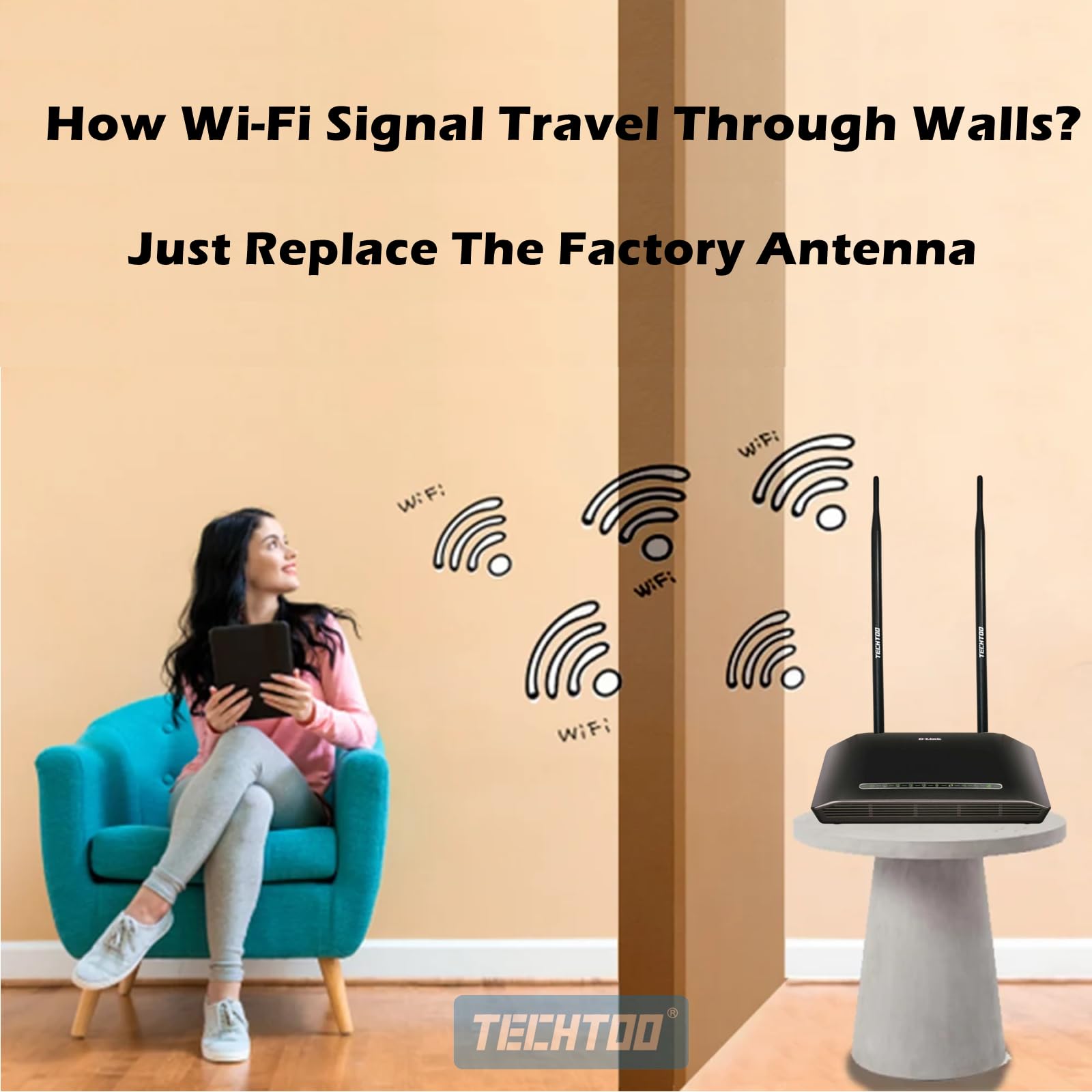 TECHTOO WiFi Antenna Will Greatly Increases The Range of Your Wireless Device. Extend Wireless Range to Dead Spot