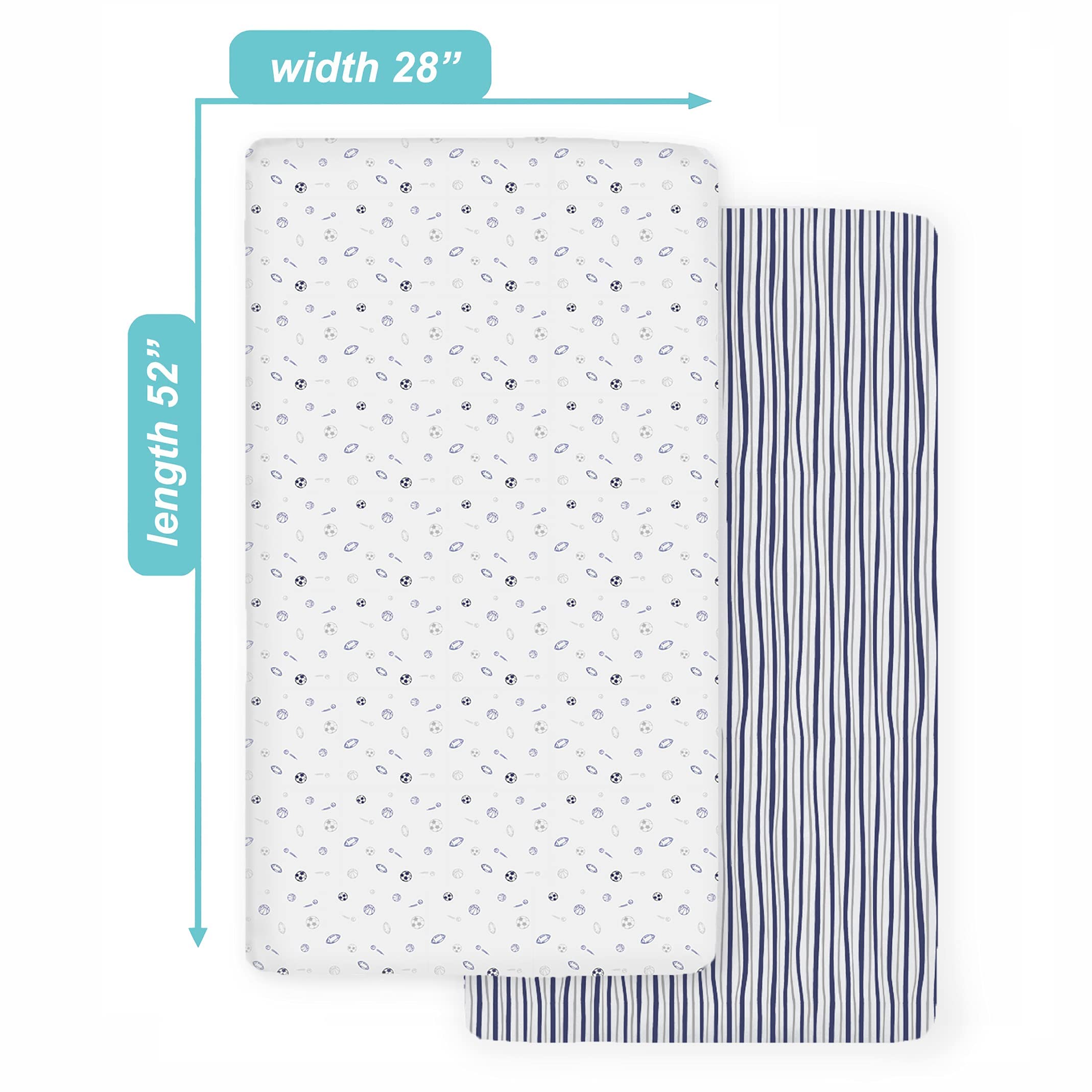 Perfect Fit & Secure Coverage: Made from 100% Cotton Jersey and measuring 28” x 52” with a depth of 9 inches, our crib sheets snugly fit most standard crib mattresses and toddler bed mattresses.