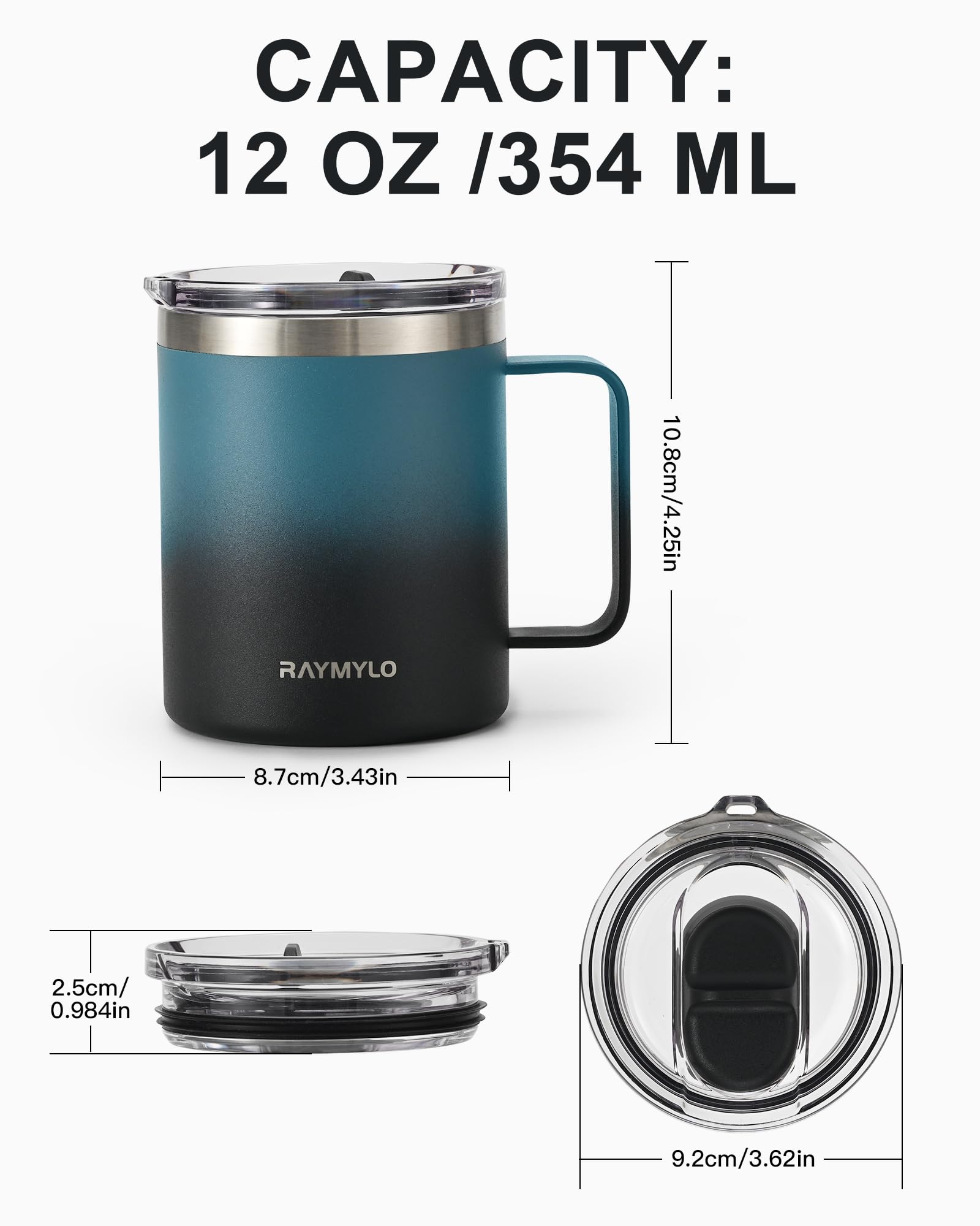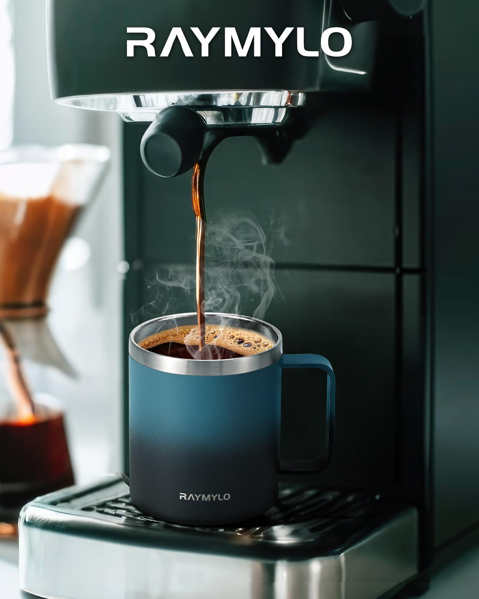 Double-Wall Vacuum Insulation: RAYMYLO Coffee Mug keep your drinks icy-cold for 9 hours and cozy hot for 3 hours with advanced Double-wall design! Perfect for hot summer days or long work hours, this insulated coffee mug with handle ensures your drink stays refreshingly cold or deliciously hot when you need it most.