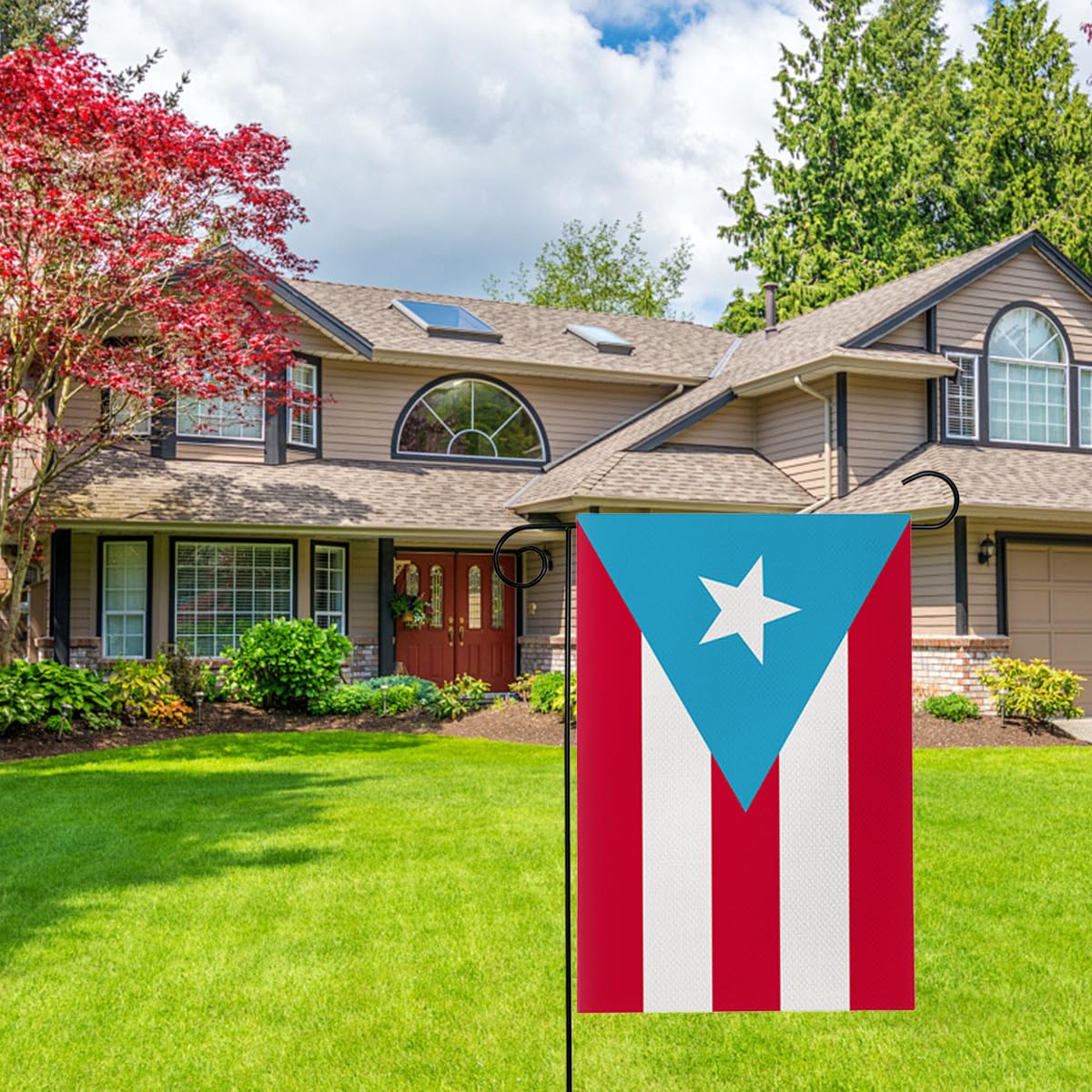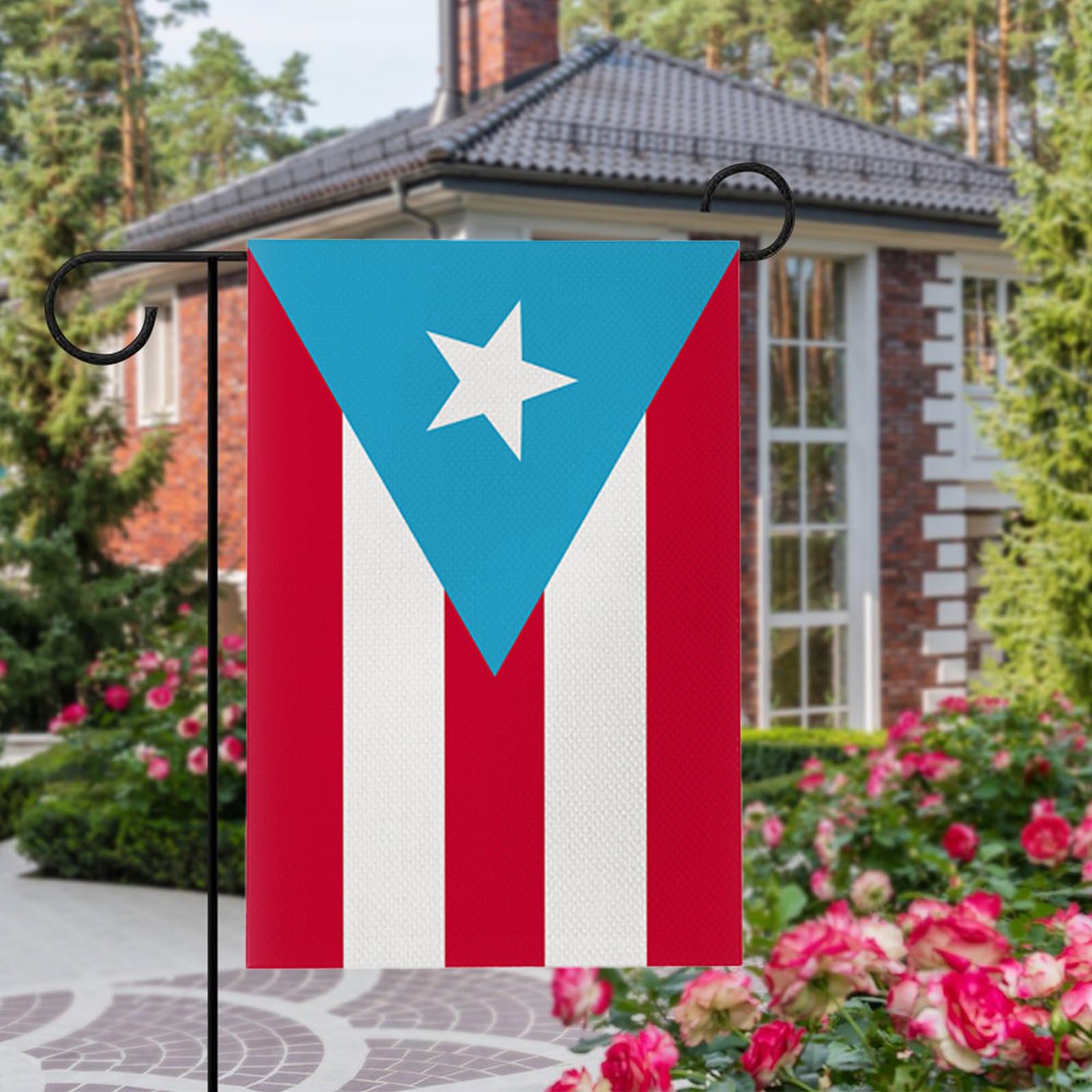 Product Highlights Double-Sided Viewing: Enjoy the complete, vibrant Puerto Rican flag pattern from any angle. Vibrant, Long-Lasting Colors: High-quality dyeing technology ensures the sky blue, pure white, and vibrant red resist fading, even outdoors. Durable Outdoor Material: Selected linen-like fabric is tough, wear-resistant, and withstands rain and sun exposure. Standard Size, Wide Compatibility: The perfect 12" x 18" size easily fits most garden flag stands. Detailed Product Description Add a Touch of Caribbean Passion to Your Home Bring the energy and pride of Puerto Rico directly to your yard, garden, or porch! This meticulously crafted Puerto Rican garden flag is not just a decoration; it's a statement of your cultural identity and family personality. Double-Sided, Perfect from All Angles Advanced double-sided printing ensures the pattern is clear and correctly oriented on both sides. No matter how the breeze blows, you can always enjoy the full, bright star and stripe design. Vivid Colors, Stay Bright The sky blue background, pure white stripes, and bright red triangle are printed with high-density inks. We are committed to colors that are not only stunning at first sight but also resistant to UV rays, remaining a vibrant fixture in your garden. Rugged and Weather-Resistant Designed for the outdoors. Our chosen linen-like fabric offers a natural, crisp texture combined with excellent durability and tear resistance. It stands up to summer downpours and winter chills, accompanying you season after season. Versatile Uses, Brighten Your Space Yard & Garden: Place it beside flower beds or along pathways, injecting culture and color into your green space. Porch & Entryway: Hang it on your porch to warmly welcome every guest and showcase your unique style. Holidays & Celebrations: The perfect decoration for building festive spirit and community connection on Independence Day, San Juan Day, and other special occasions. Indoor Decor: Also great for the garage, man cave, or game room as a unique wall decor that showcases your heritage. Use this flag to tell your story and express your pride. It's a decoration, but also an emotional keepsake. Product Specifications Name: Puerto Rico Garden Flag Size: 12" x 18" (approx. 30 x 45 cm) Material: High-Quality Linen-like Fabric Features: Double-Sided, Vibrant Colors, Outdoor Durable Suitable Scenes: Yard, Garden, Porch, Patio, Holiday Decor, etc.