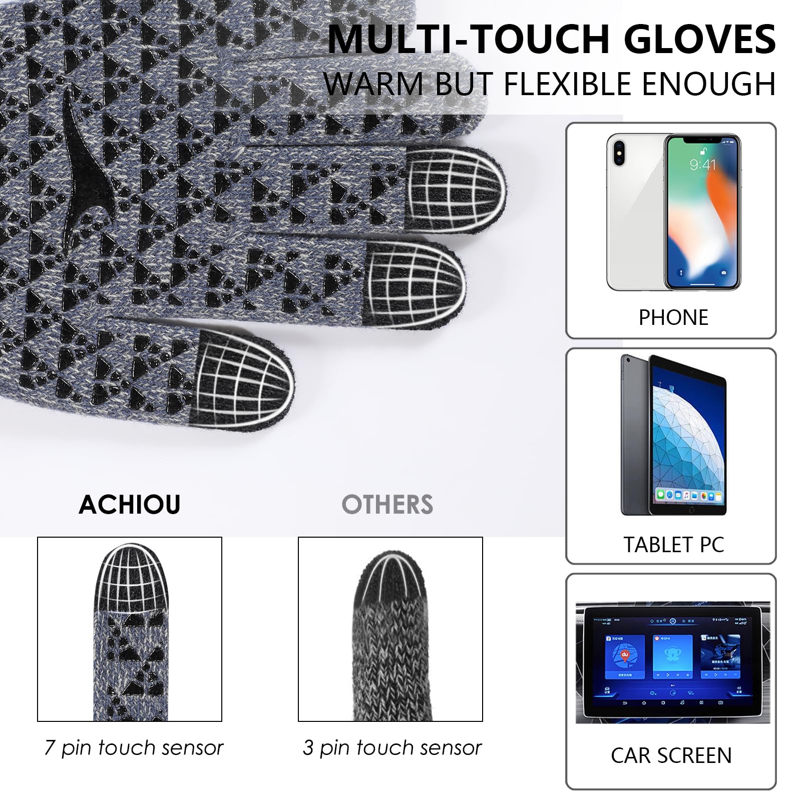 Convenient & Breathable Material : Living in the technology age, Achiou winter knit gloves let you use your phone without having to expose your hands. Breathable material allows the gloves to ventilate in order to decrease sweat accumulation.