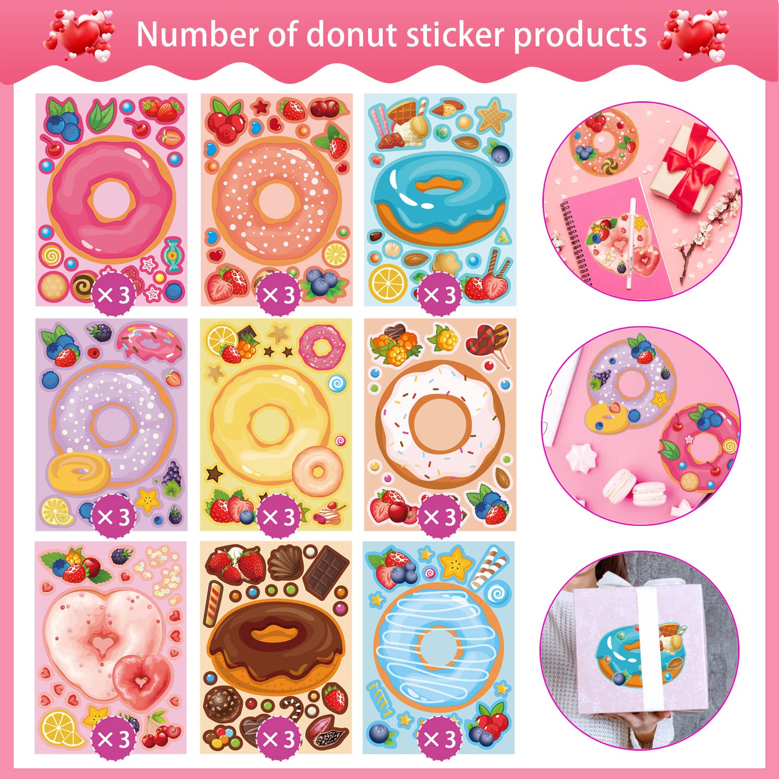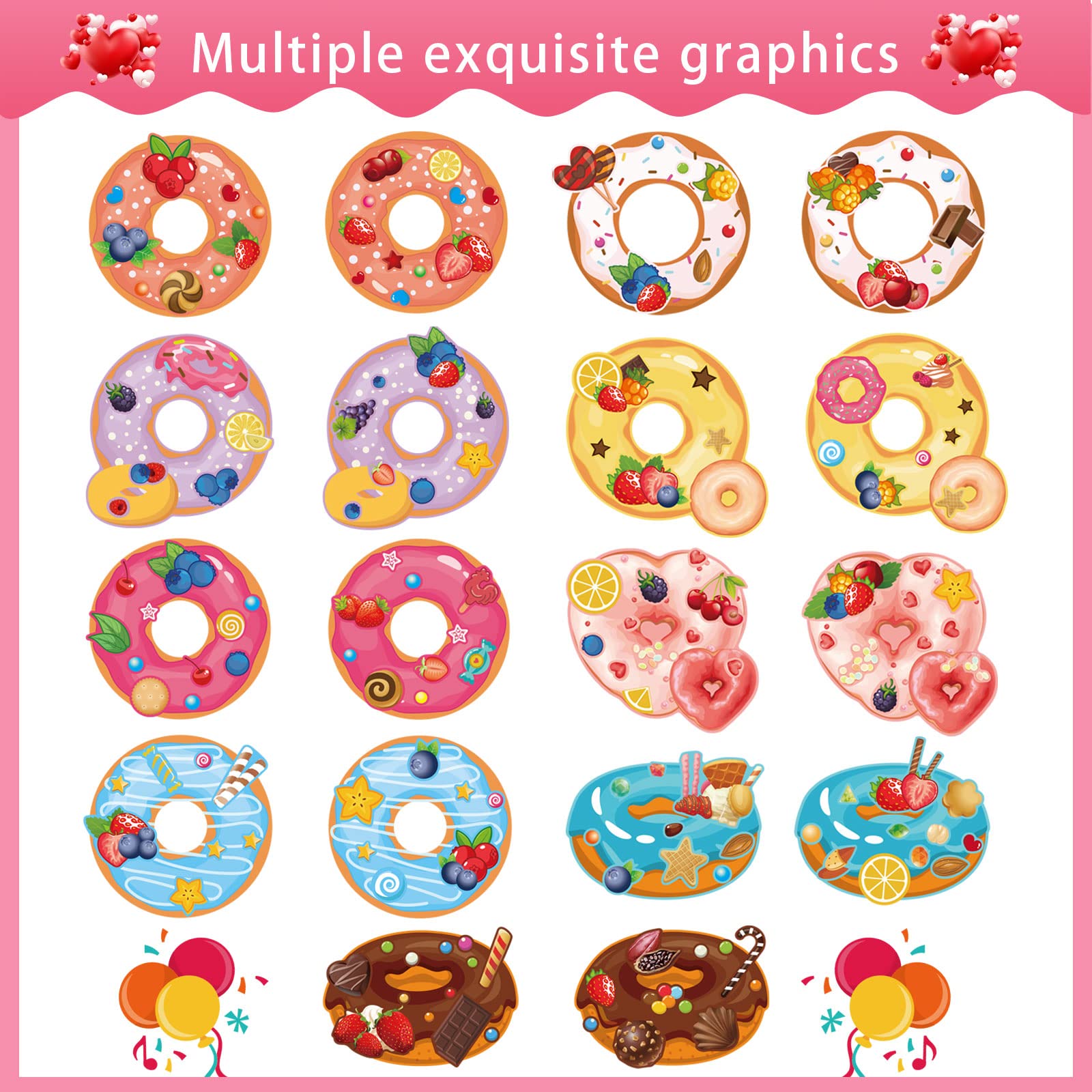🍩Make Your Own Donut Stickers for Kids:You will receive 27 stickers(size:7.08 x 5.11 inch). These DIY stickers for donuts offer an array of colorful options to choose from, such as fun sprinkles, delightful frosting, and playful patterns.