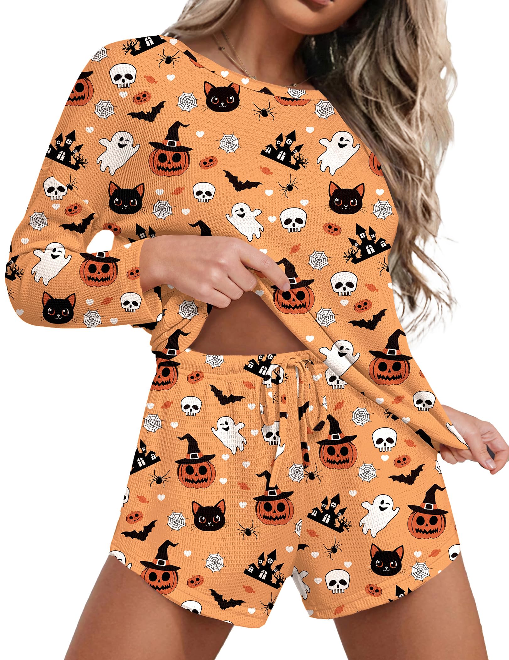 SHORTS: Pajama shorts for women with soft elastic waist that fits for any body size. 2 piece sweatsuits for women set have curved hem, exquisite and unique. There are pockets on both sides, you can put mobile phones, small snacks in the pockets
