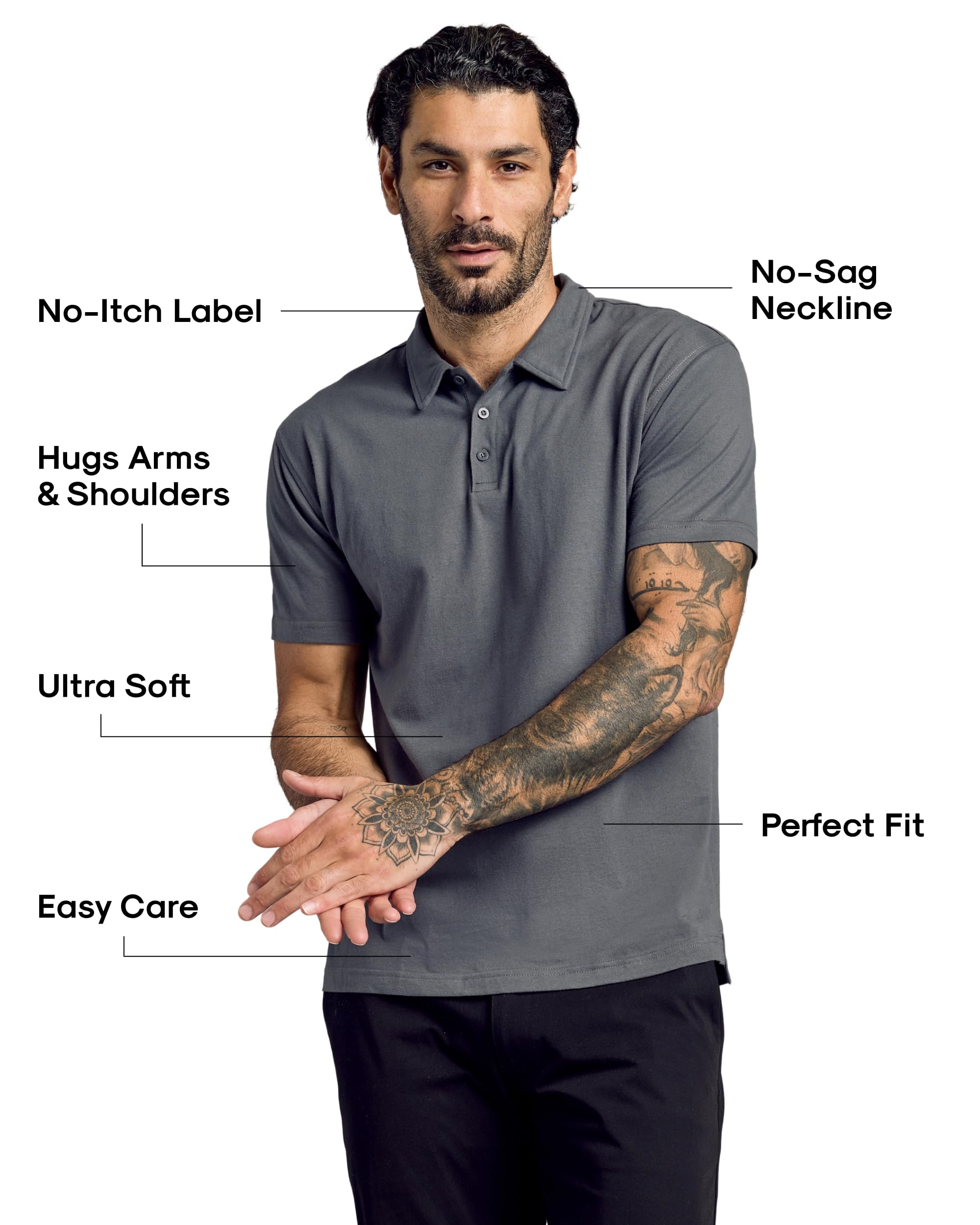 ALL-DAY COMFORT: Choose our buttery-soft cotton-poly blend polo t shirts for men for timeless comfort with minimal shrinkage, or our stretchy poly-spandex golf shirts for men with moisture-wicking and odor control for performance on the go.