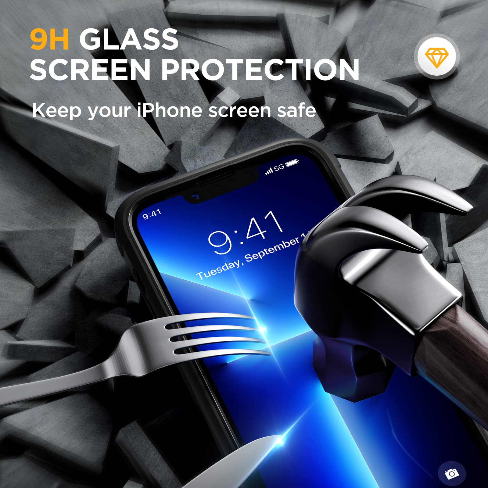 [9H Tempered Glass Screen Protector] Compatible with iPhone 13 pro max case with the latest built-in premium quality. (aka 9H Hardness and ultra-thin HD tempered glass screen protector). It can protect your screen consistantly from scratches, drops, and any other accidents while maintaining its original response sensitivity and touch-screen accuracy of your phone.