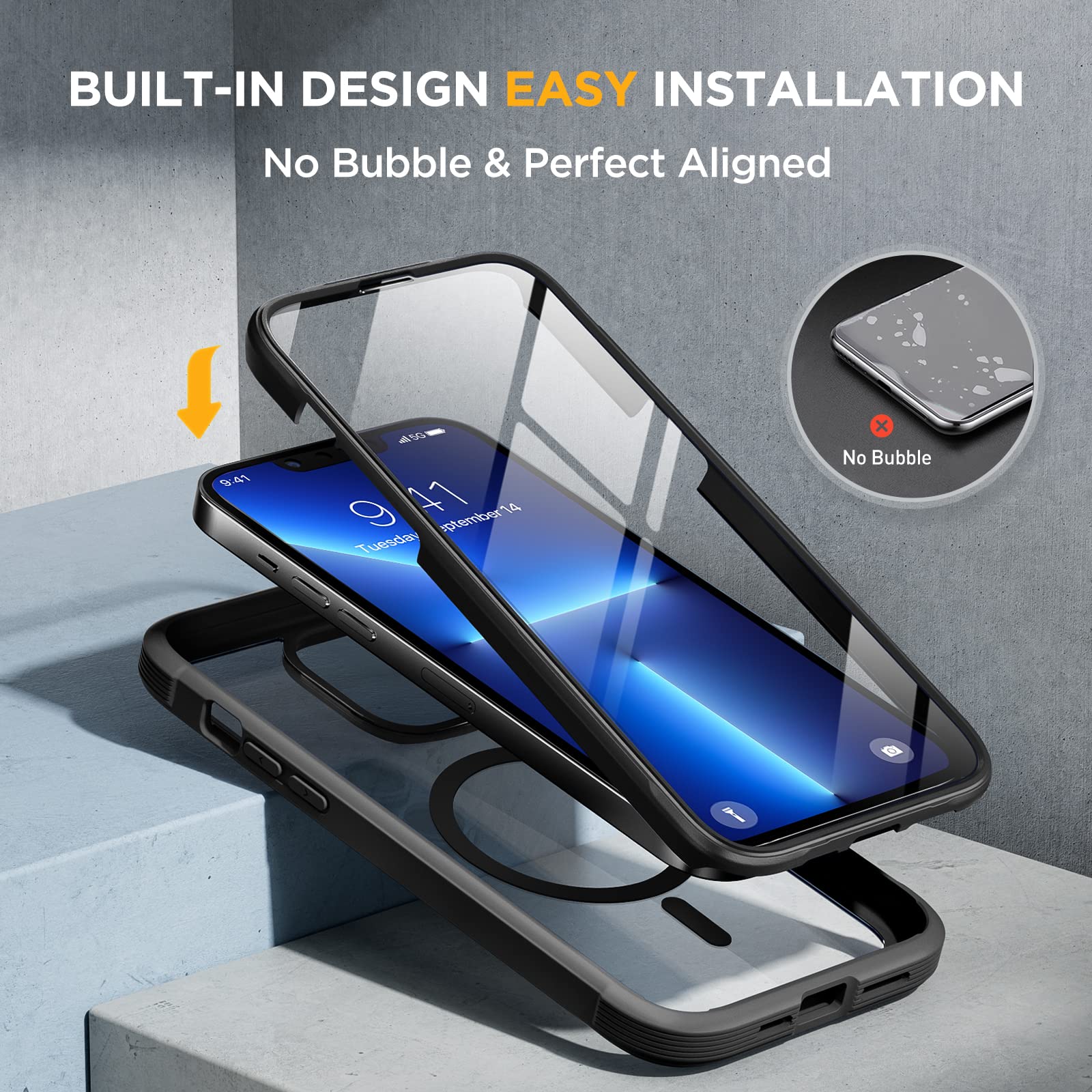[Easy to Get Phone Protection] Friendly integrated design. The front and back case design make installation very simple, no need to worry about air bubbles. Press your phone into the front cover then the back case. Note: all assembly and disassembly need to be started from the lower right corner.