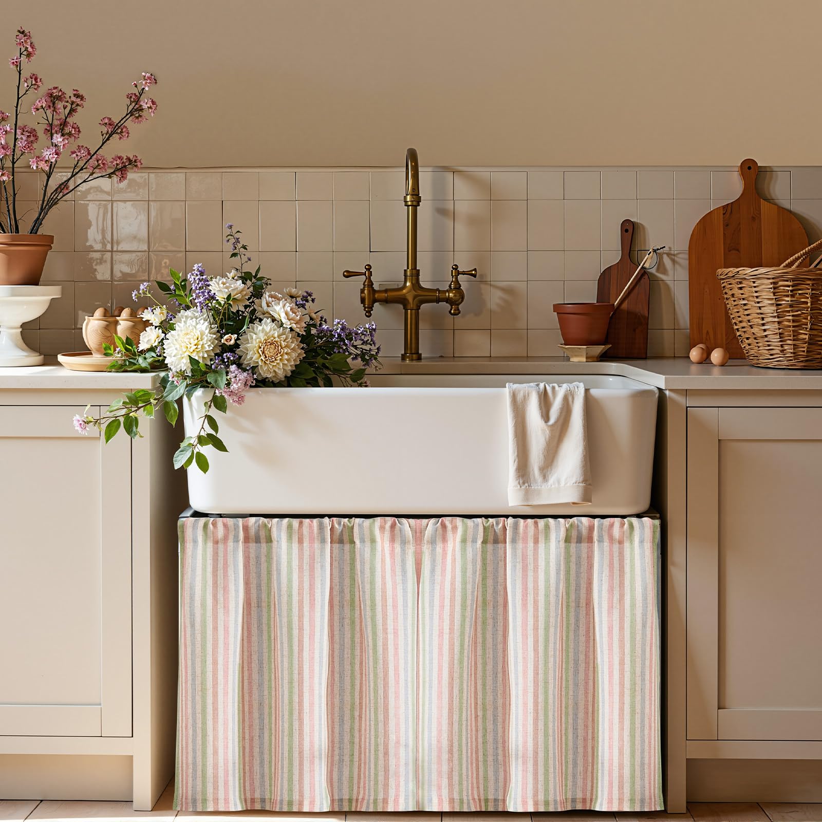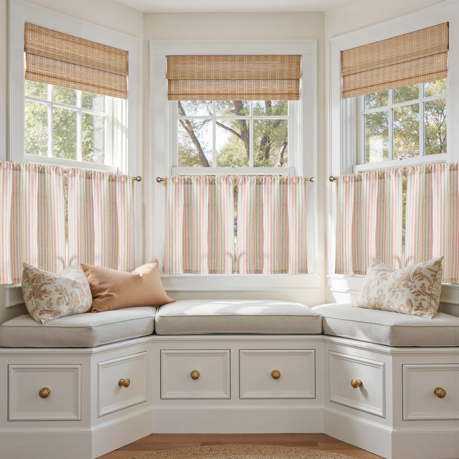 Rustic Striped Design: Evenly spaced vertical stripes give a neat, orderly look while subtly guiding the eye upward. The natural linen texture and gentle drape add understated charm, creating a clean and cozy feel for your space