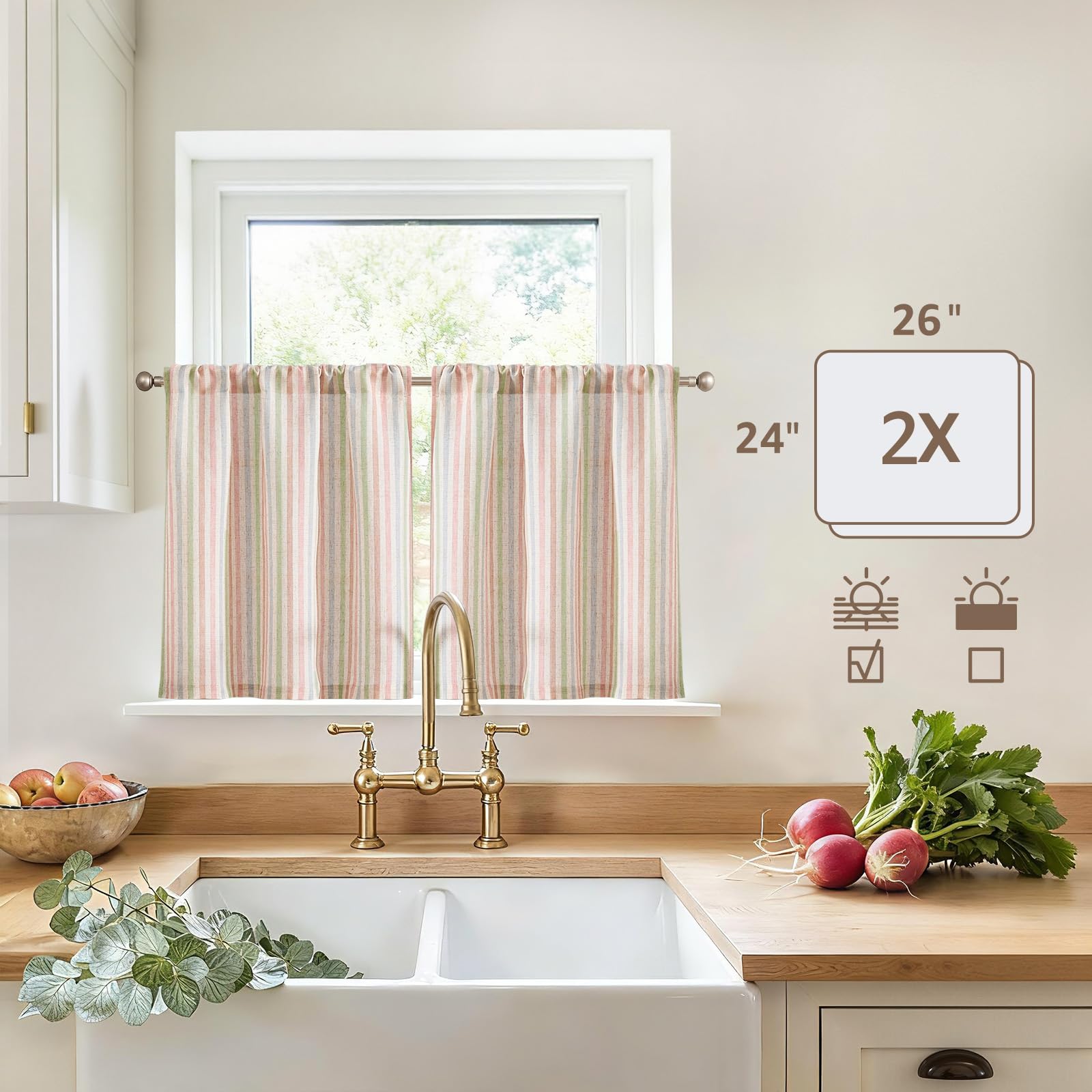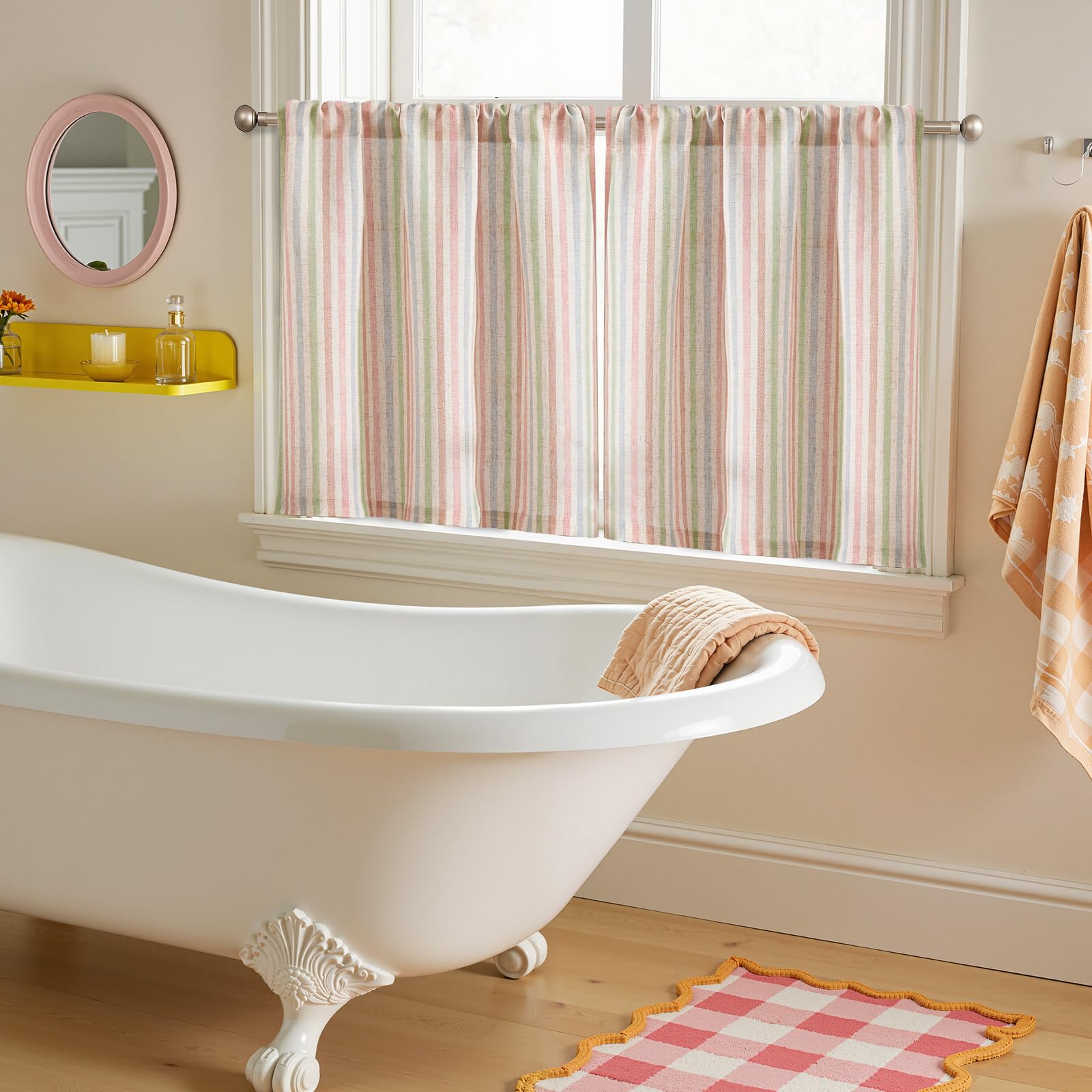 Ready-Made & Easy to Install: Includes 2 panels, each 26"W x 24"L, with a 3-inch pole pocket for standard or tension rods. Easy to hang and slide, adds style to any small window. For a fuller gathered look, we recommend choosing a curtain width 1.5 to 2 times your window width