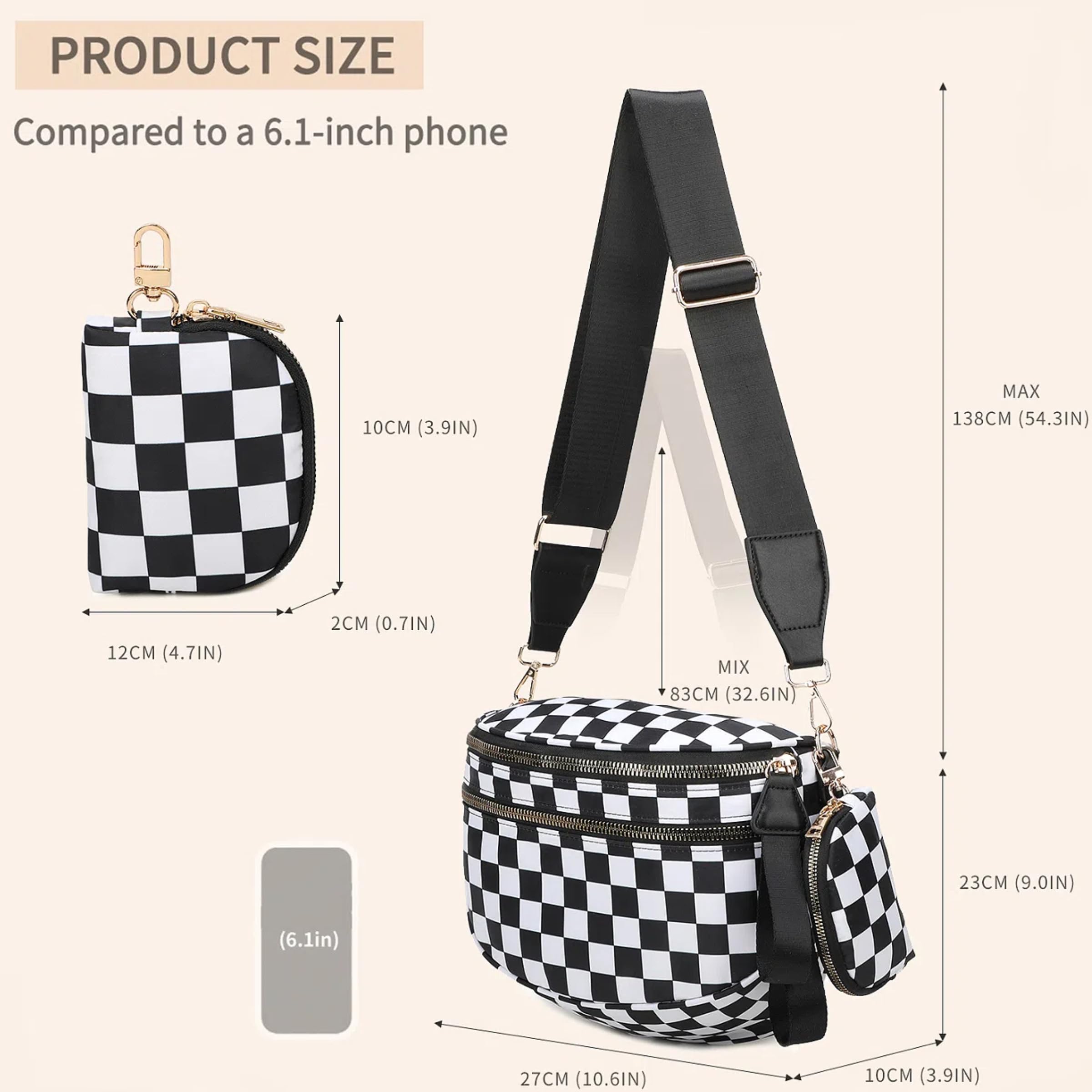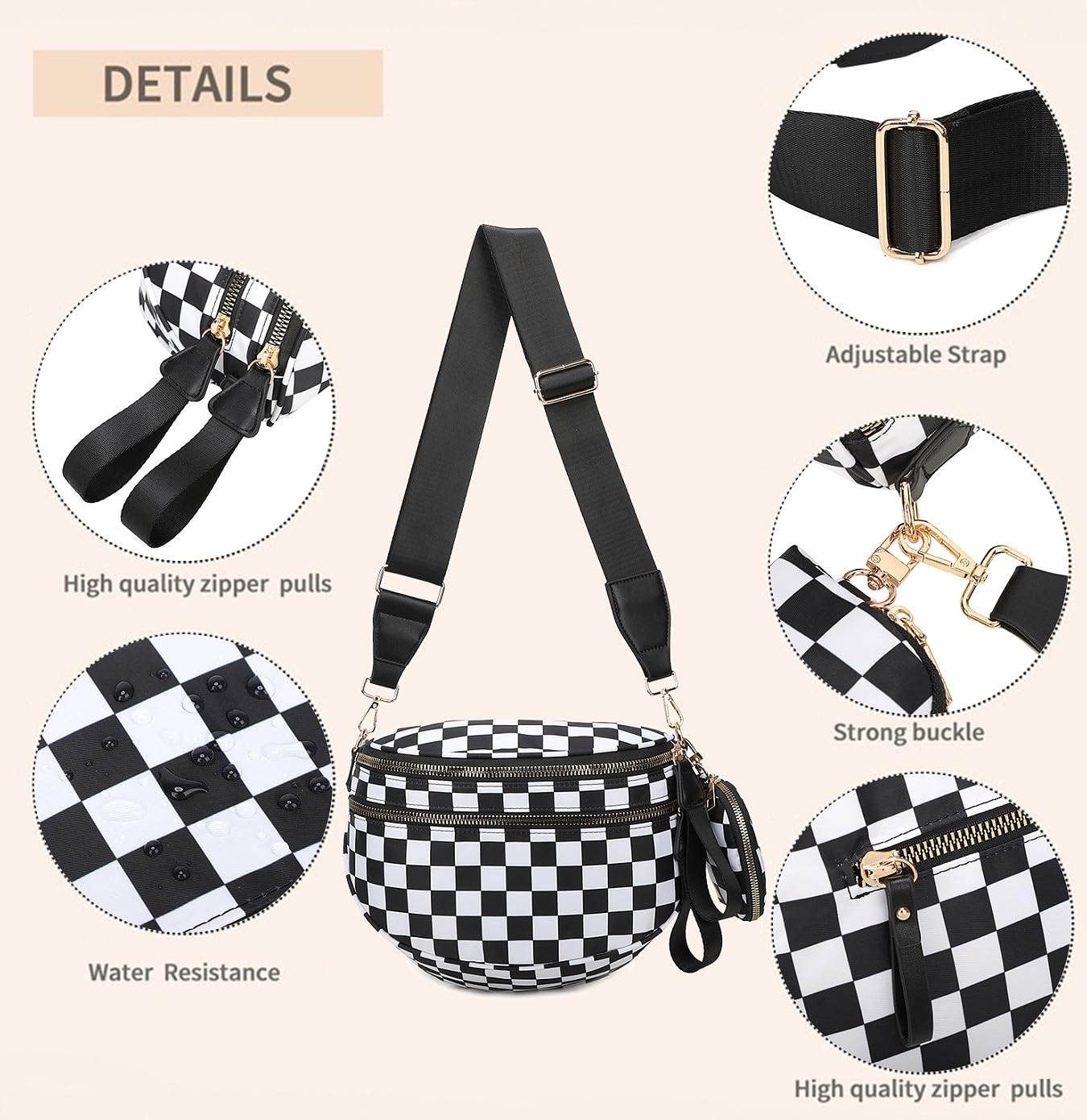 【Tough and Easy to Clean Material】Crafted from durable, water - resistant nylon, this checkered bum bag can handle daily wear and tear. Not only does it stand up to the rigors of everyday use, but it's also a breeze to clean simply scrub away any dirt or stains.
