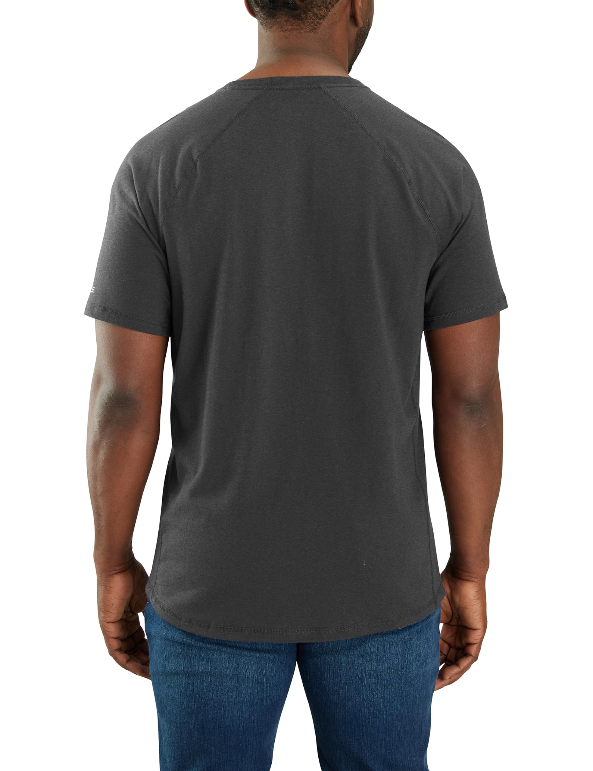 Description On the job or under the sun, this men's Carhartt t-shirt keeps you cool and comfortable. UPF-rated jersey fights off sweat and dries fast so you can stay focused on the task at hand. Ventilated panels keep the air circulating, and a drop-tail hem provides extra coverage.