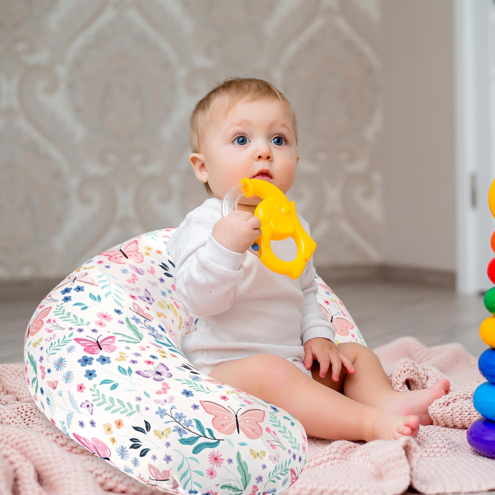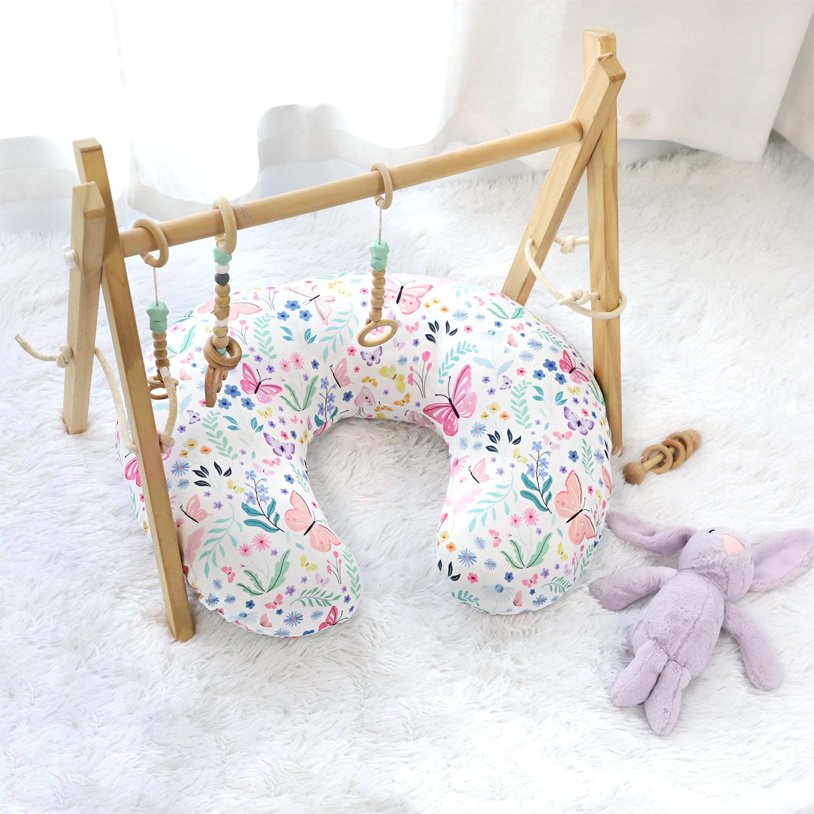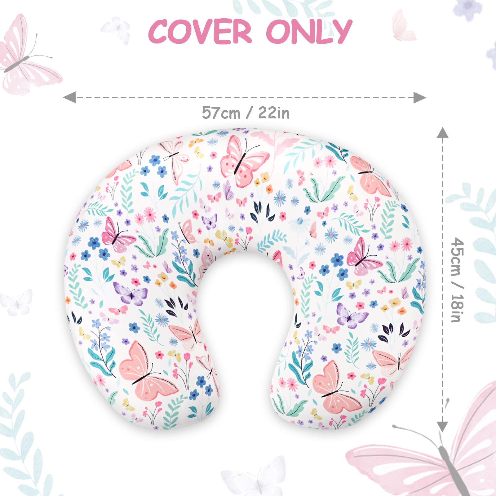 BUTTERFLY: Adorned with sweet butterfly and flora motifs, our unique 'Butterfly' design for the nursing pillow slipcover adds a distinctive artistic touch, instantly brightening your baby's room.