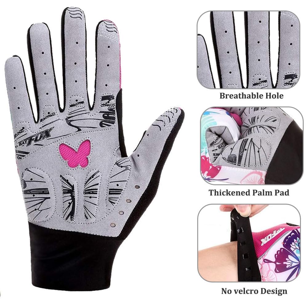 【ANTI-SLIP AND WEAR-RESISTANT】---Non-slip silicone patterns cover the full palm,Thickened pad with wear-resistant microfiber ease your palm fatigue Our bike gloves for women include shock-absorption technology to relieve riding pain and fatigue for a more comfortable ride.