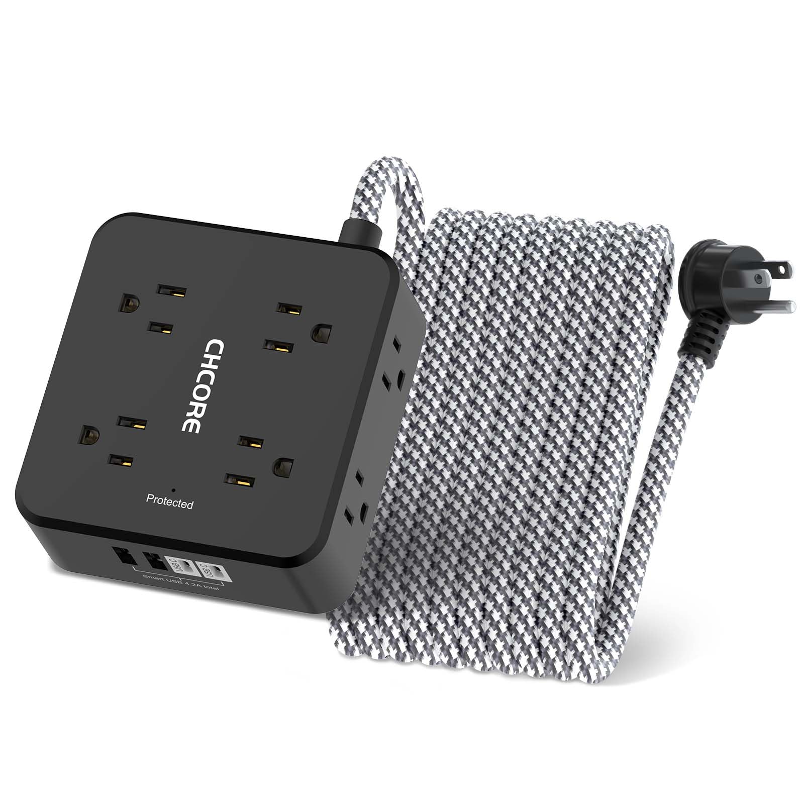 【12 IN 1 Surge Protector Power Strip】- The 3-side design surge protector power strip with 8AC widely outlets and 4 USB charging ports(2 USB C Ports), 20 Feet extension cord(1250W/10A), can power up to 12 devices simultaneously. Wide range voltage design, can be used on 100v to 240v circuit. The compact design saves more space, suitable for the home, office, and college dorm room essentials.
