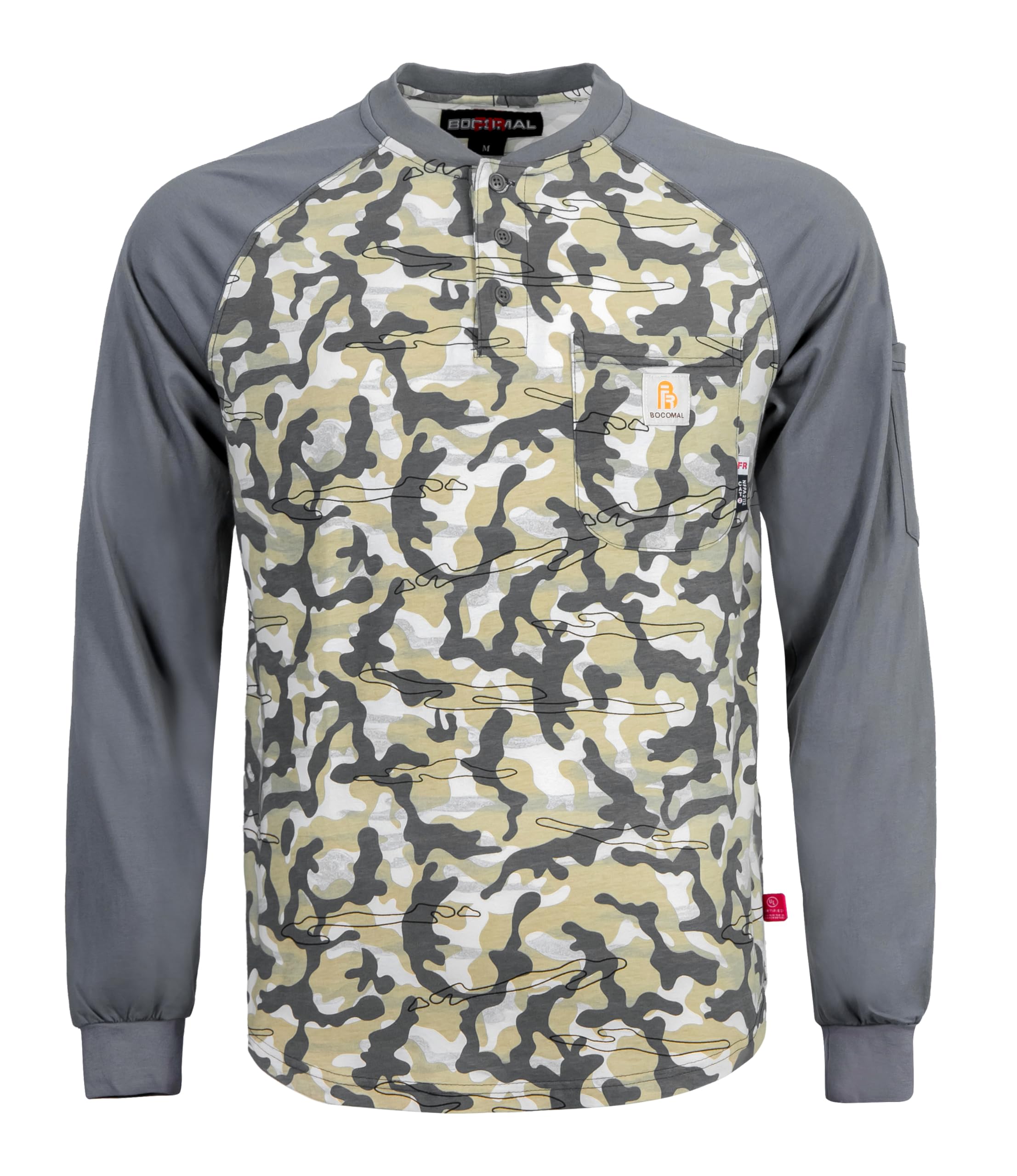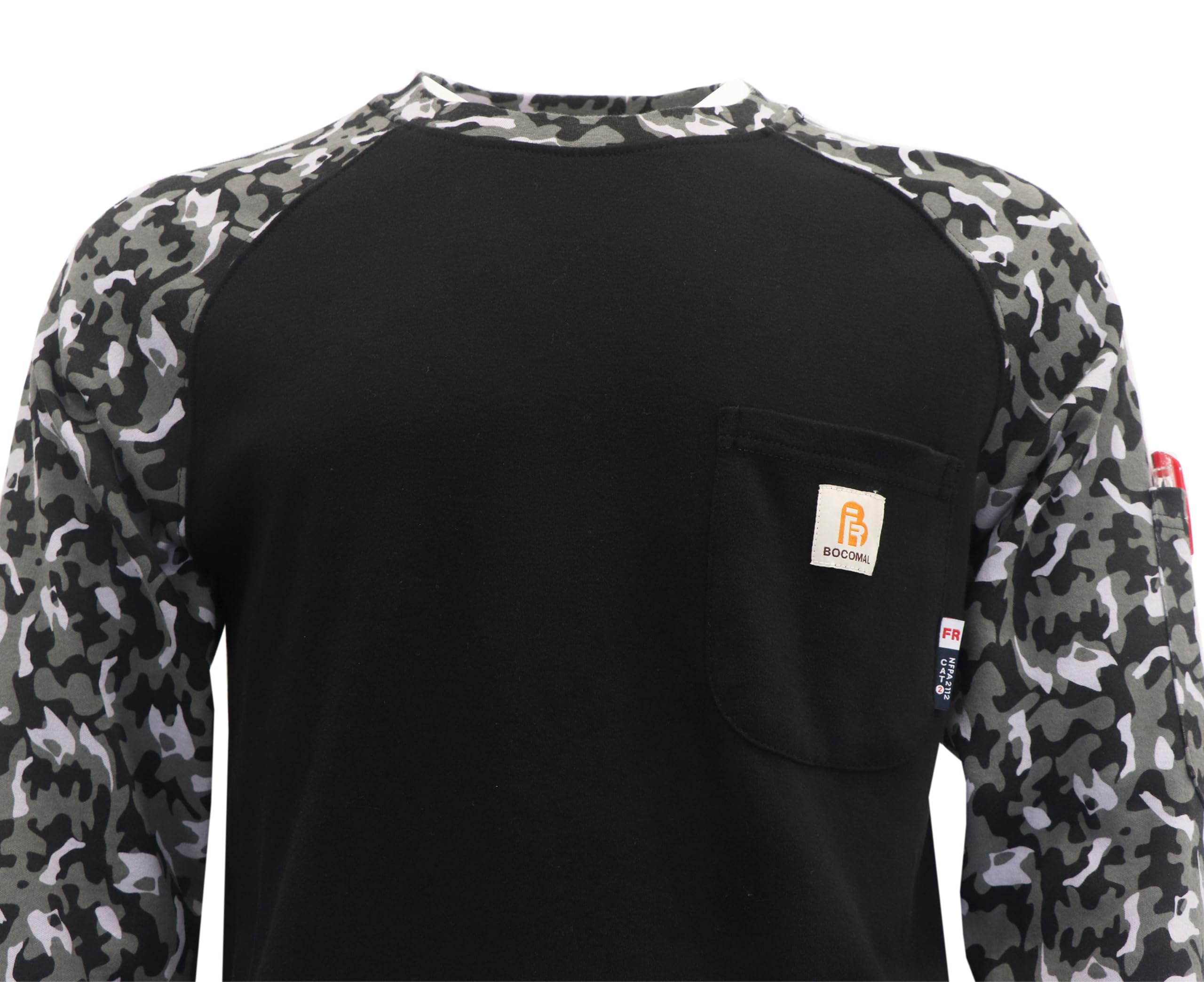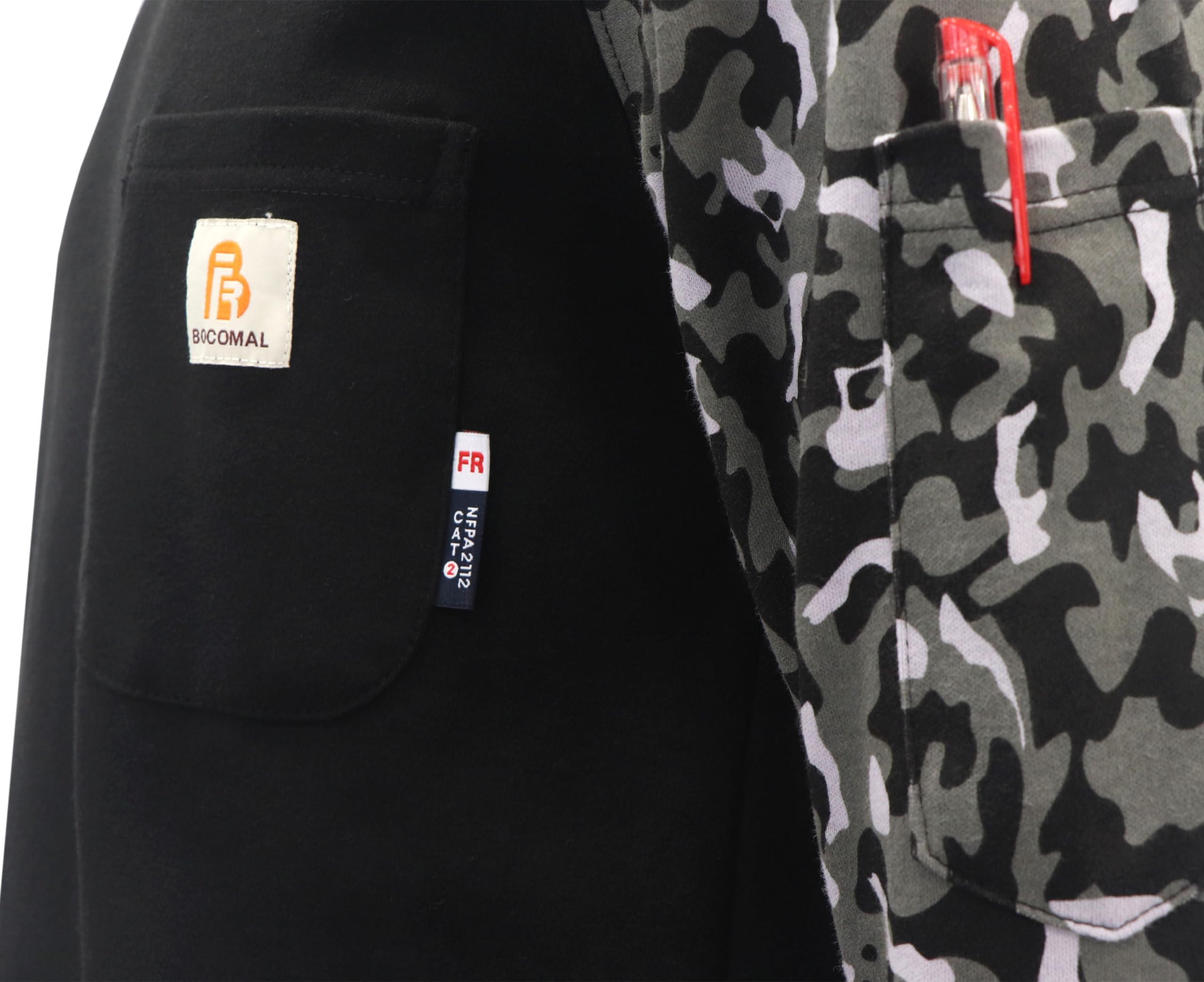 FR MATRIALS:7OZ Cotton Knit FR Treated,FR Buttons,FR Sewing Threads!Clear FR Tag on arms and bottom front.More FR info On Neck Tag About UL Certification.We Attached A Small Sample Inside Package For Cunstomers Simple FR Try