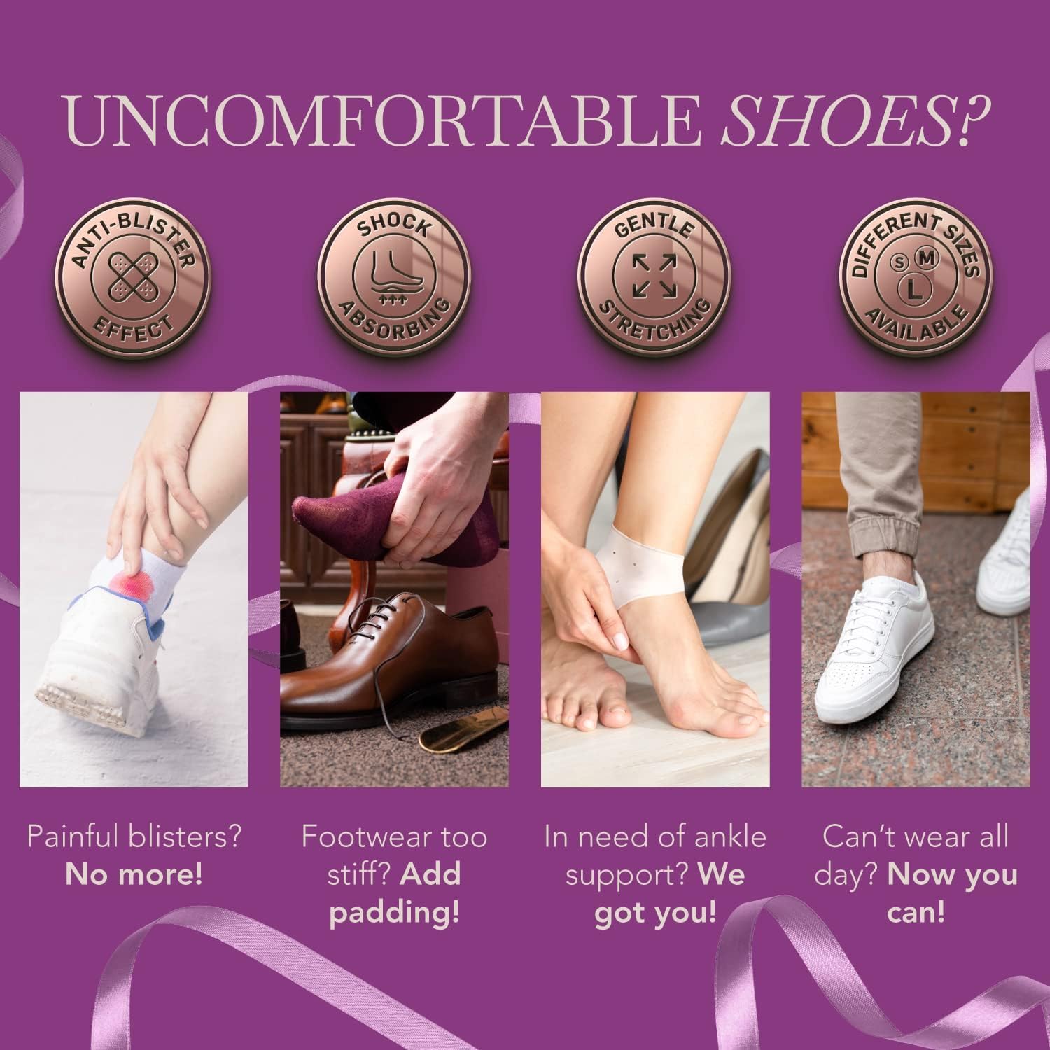 FOR EVERYDAY FOOTWEAR - Simply stretch & slip the heel supports for heel pain cracked heel socks onto your feet & feel perfectly comfortable on the go! If you are not 100% satisfied with our heel cups for heel pain, talk to us & weβll make it right.