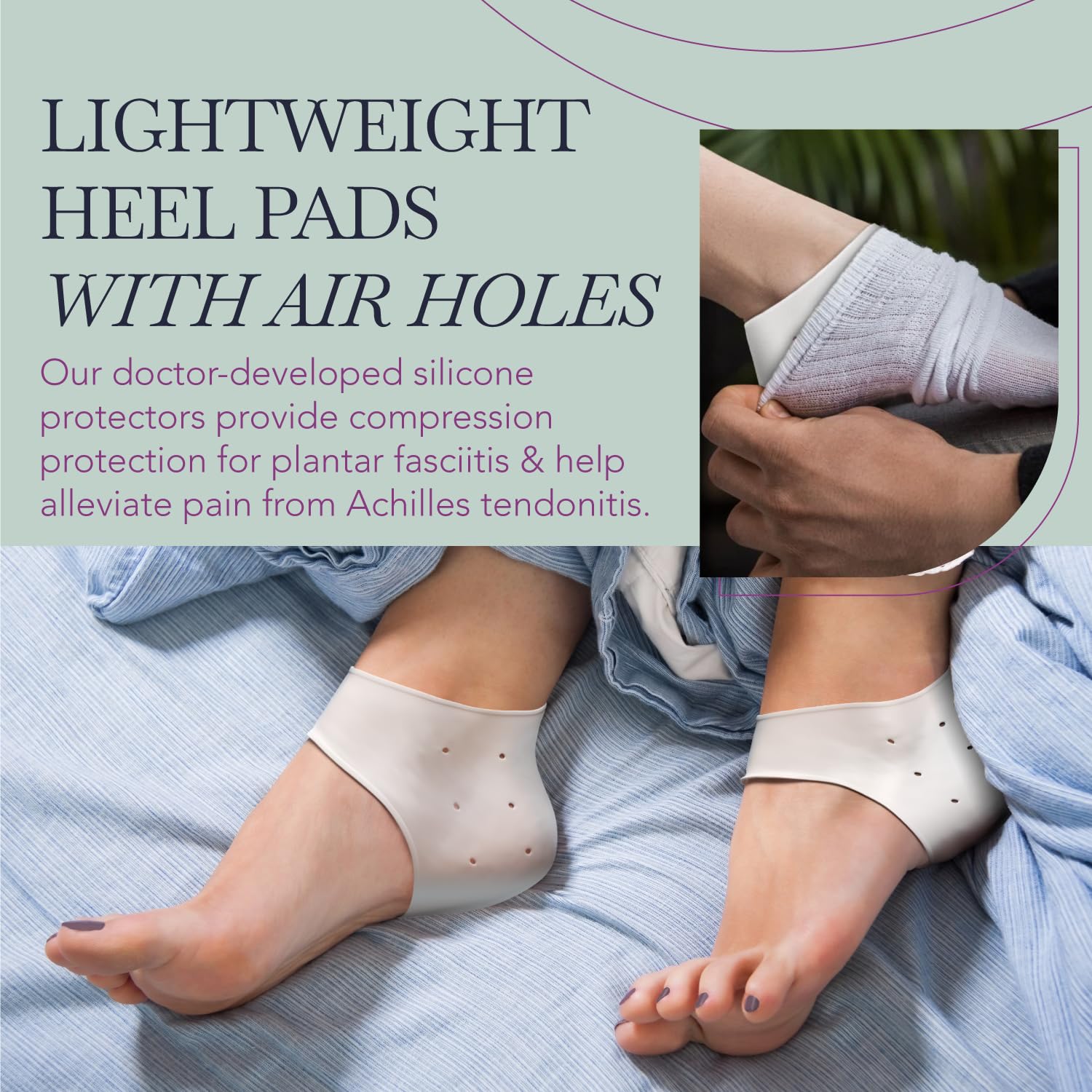 MEDICAL-GRADE SILICONE - Made of light silicone heel pads with air holes, our heel cushion silicone socks provide shock & impact absorption for your sore feet. Perfect to wear as heel guards for shoes/heel protectors for blisters on long walks/running!