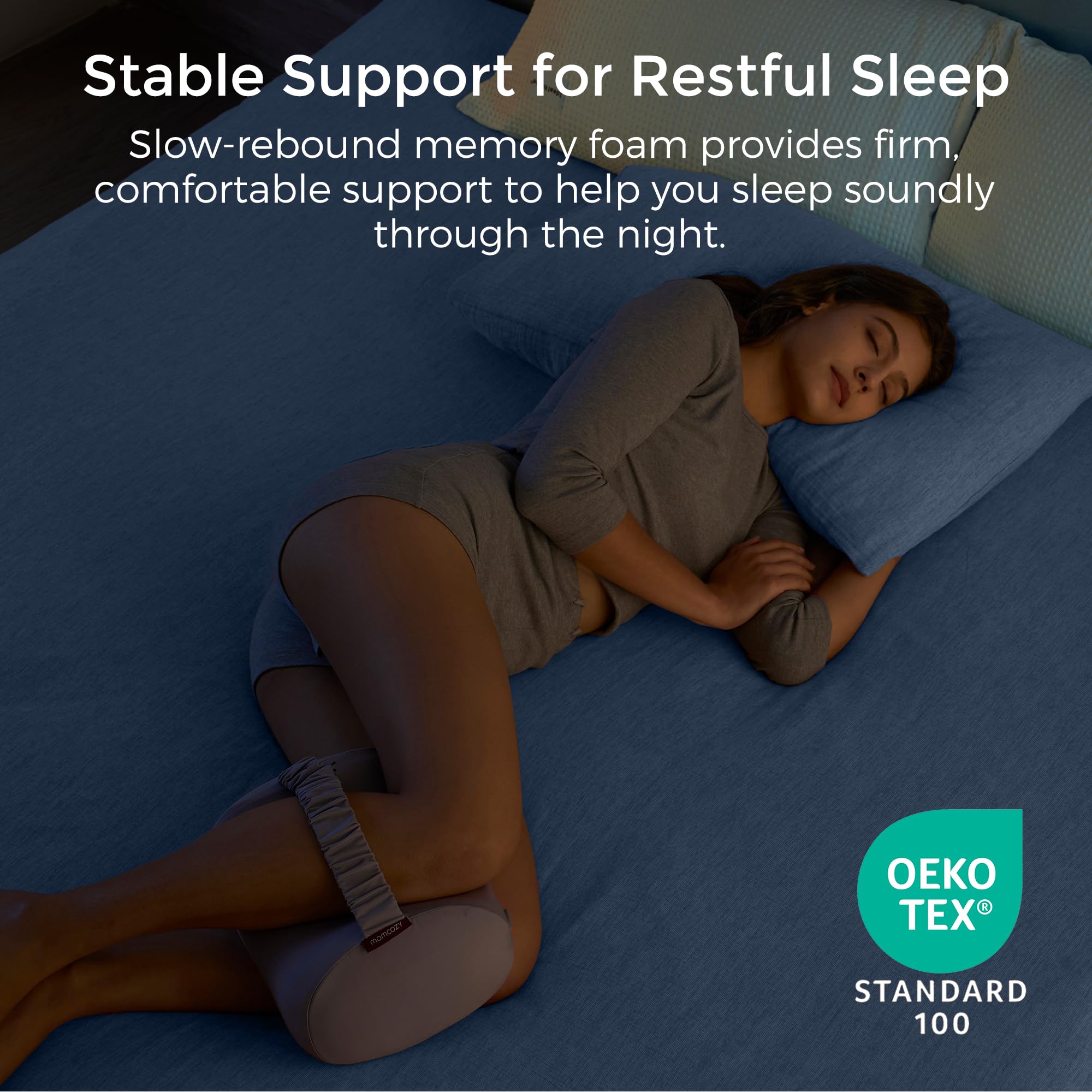 Soft Support Memory Foam, Continuous Deep Sleep: Slow rebound memory foam will shape according to body temps and pressure, give full support from thigh to knee to calf, evenly disperses pressure, relax muscles, improve blood circulation, effectively relieve sciatica, knee or back pain, good cushion let leg pillow absorbs and disperses the impact force caused by sleeping partner's moving, avoid you from frequent waking up due to external interference, improve sleep quality!