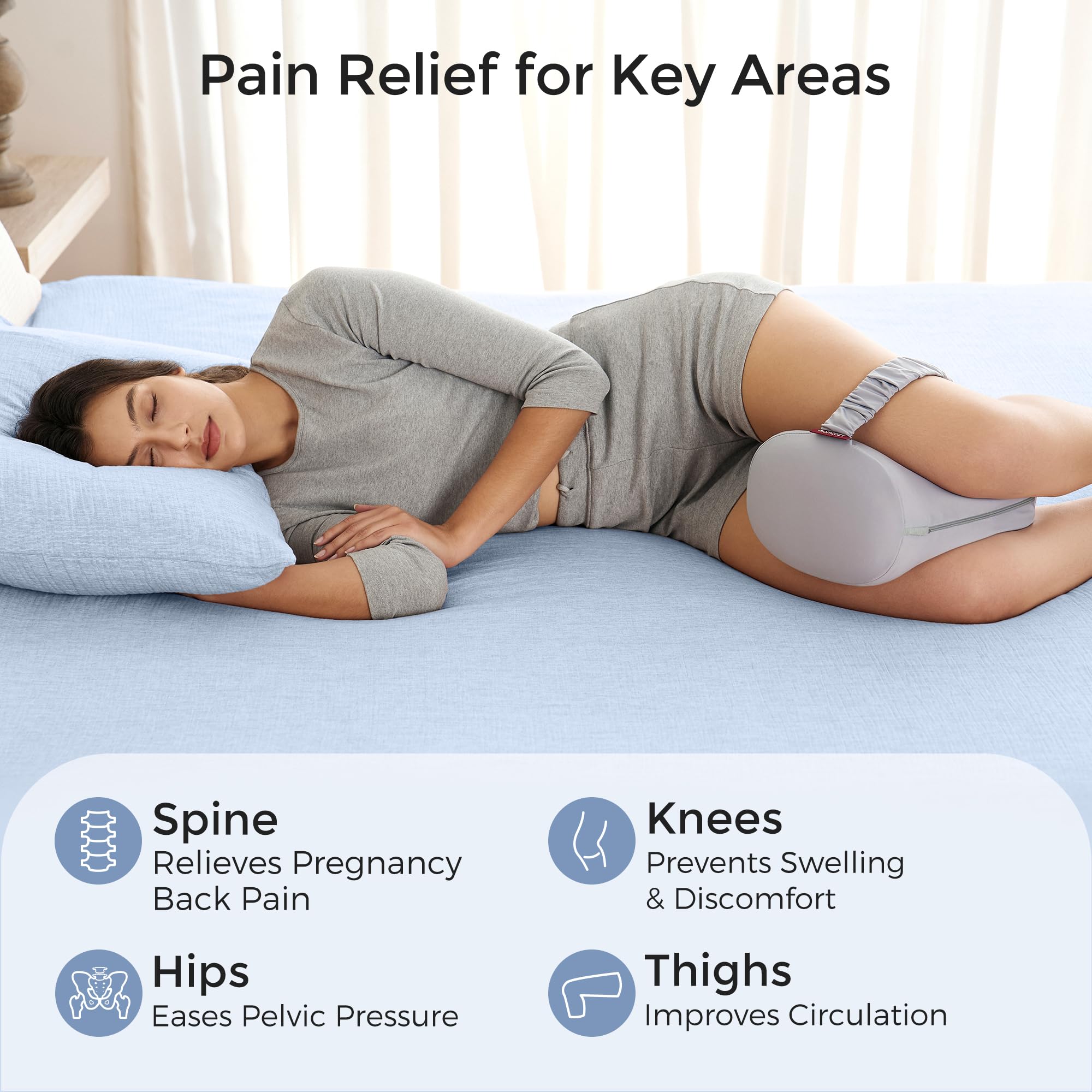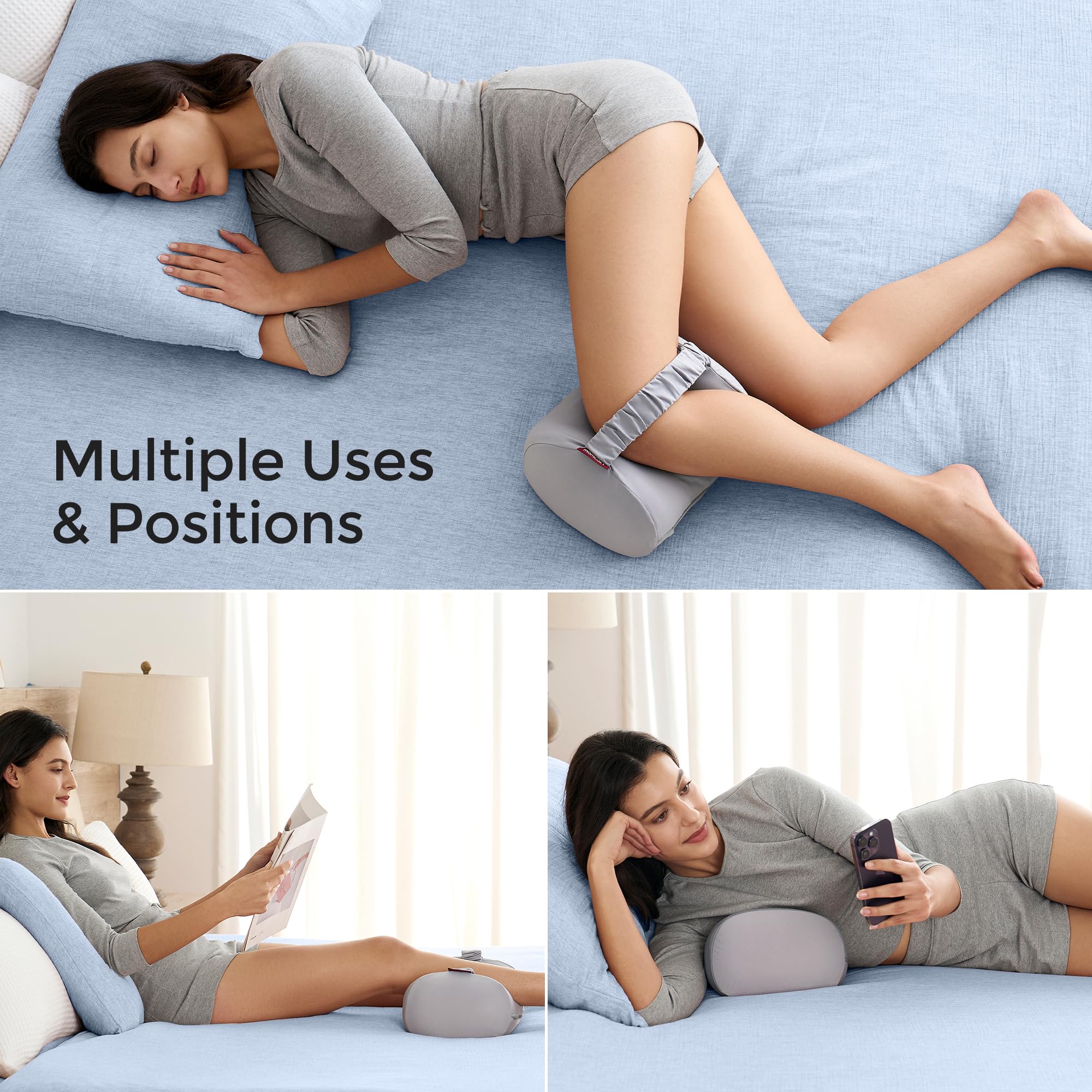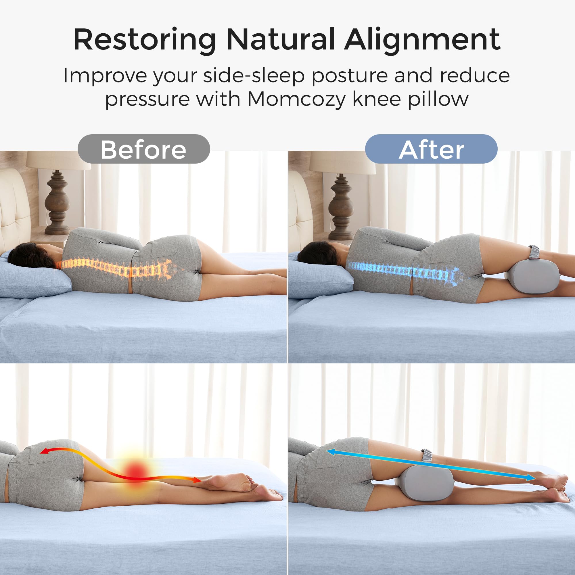 Spine, Legs & Hip Alignment, Orthopedic Pain Relief For Side Sleeping & Pregnancy: For side sleepers, upper leg leans forward, spine is rotated, knees rub each other, hip joints twist, result in back, knee and sciatic nerve pain, such pain is more obvious for the pregnant who continue to gain weight during pregnancy. Place Momcozy knee pillow between knees, correct spinal position, align legs and hips, avoid knee friction, sleep in a correct sleeping posture, get rid of painful pressure!