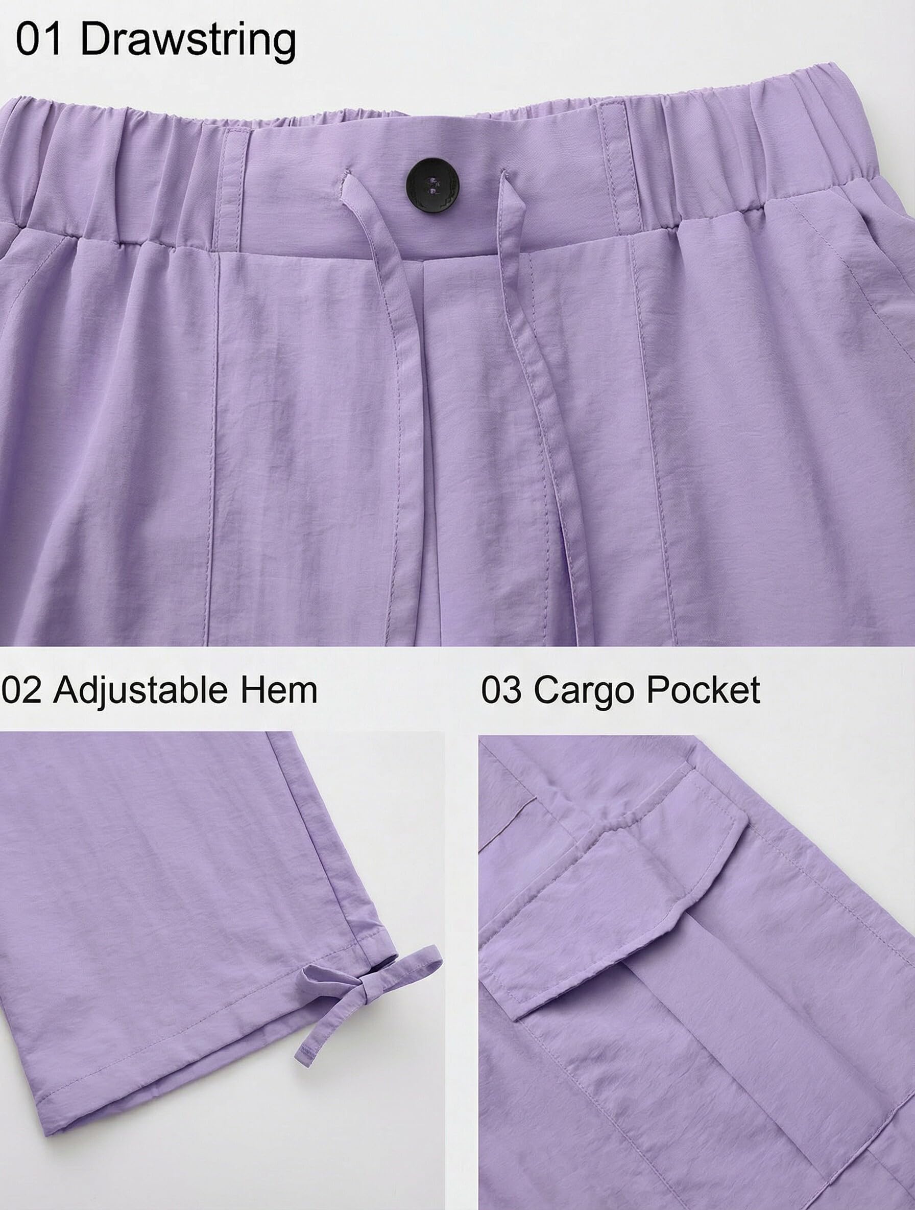 Y2k parachute pants with drawstring at waist and hem to adjust the fit and length
