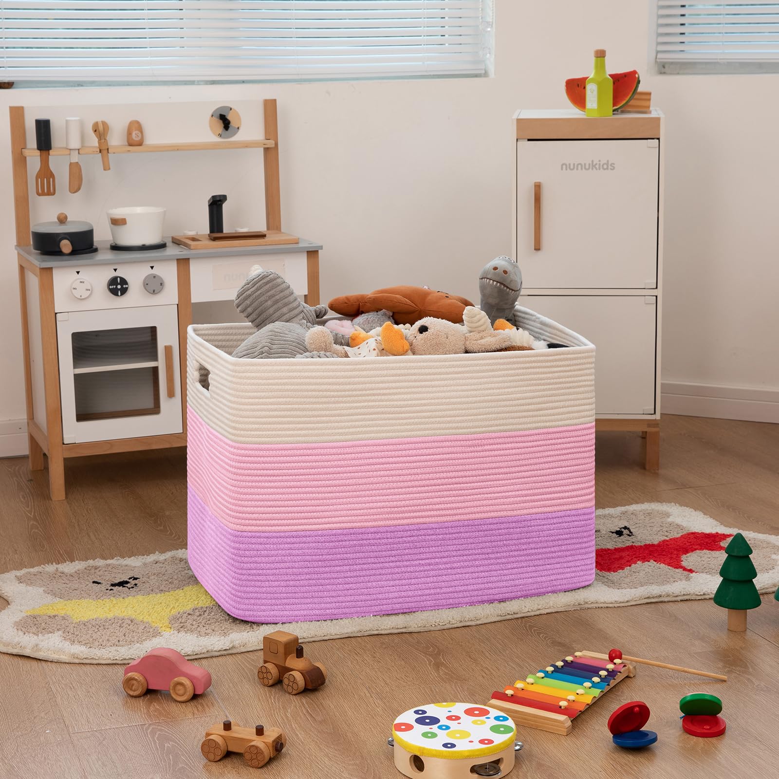 100% Cotton Rope Storage Basket:OIAHOMY woven baskets are made of 100% natural cotton, chemical and odor free, there are no sharp or hard edges to scratch floors, and safe for kids and pets. It is more durable than plastic basket