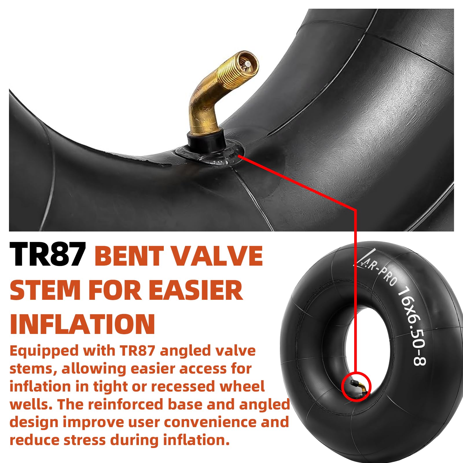 TR87 Bent Valve Stem for Easier Inflation - Equipped with TR87 angled valve stems, allowing easier access for inflation in tight or recessed wheel wells. The reinforced base and angled design improve user convenience and reduce stress during inflation.