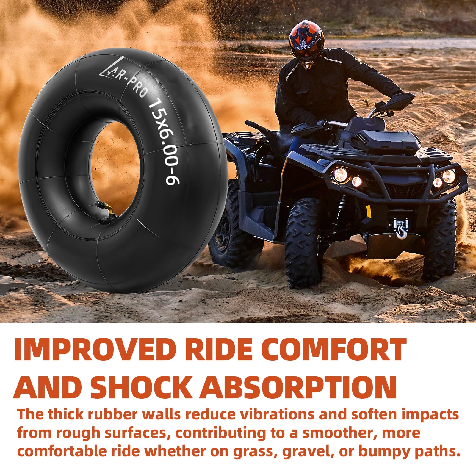 Made From Heavy-Duty Natural Rubber Construction - Made from durable, heavy-duty natural rubber that is 4X thicker than standard tubes. This material provides enhanced air retention and elasticity, resistance to temperature and aging, and dependable long-term performance under varied terrain and load conditions.