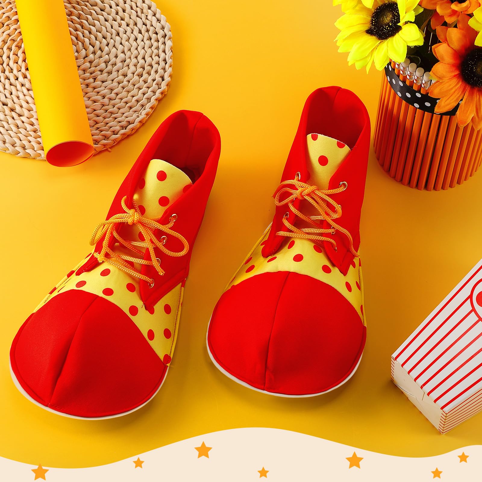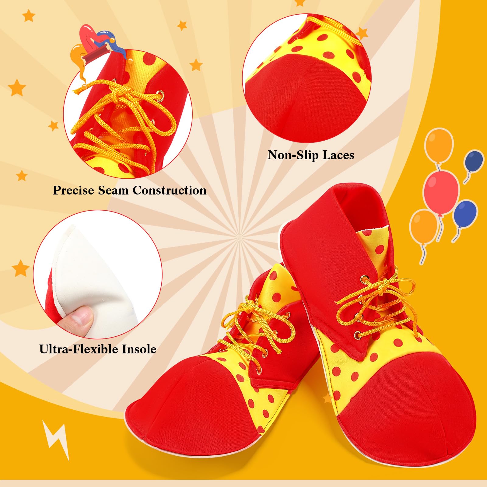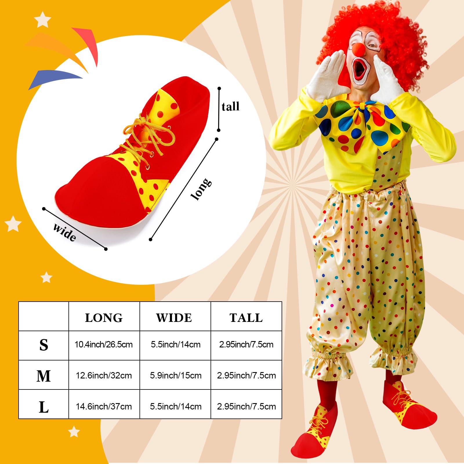 Vibrant Clown Costume Accessories: bright yellow polka dot design with exaggerated silhouette, instantly elevates Halloween, carnival, and birthday party performances-good for authentic clown cosplay looks; It is not recommended to wear it over your own shoes, and you can choose the appropriate size and wear it directly