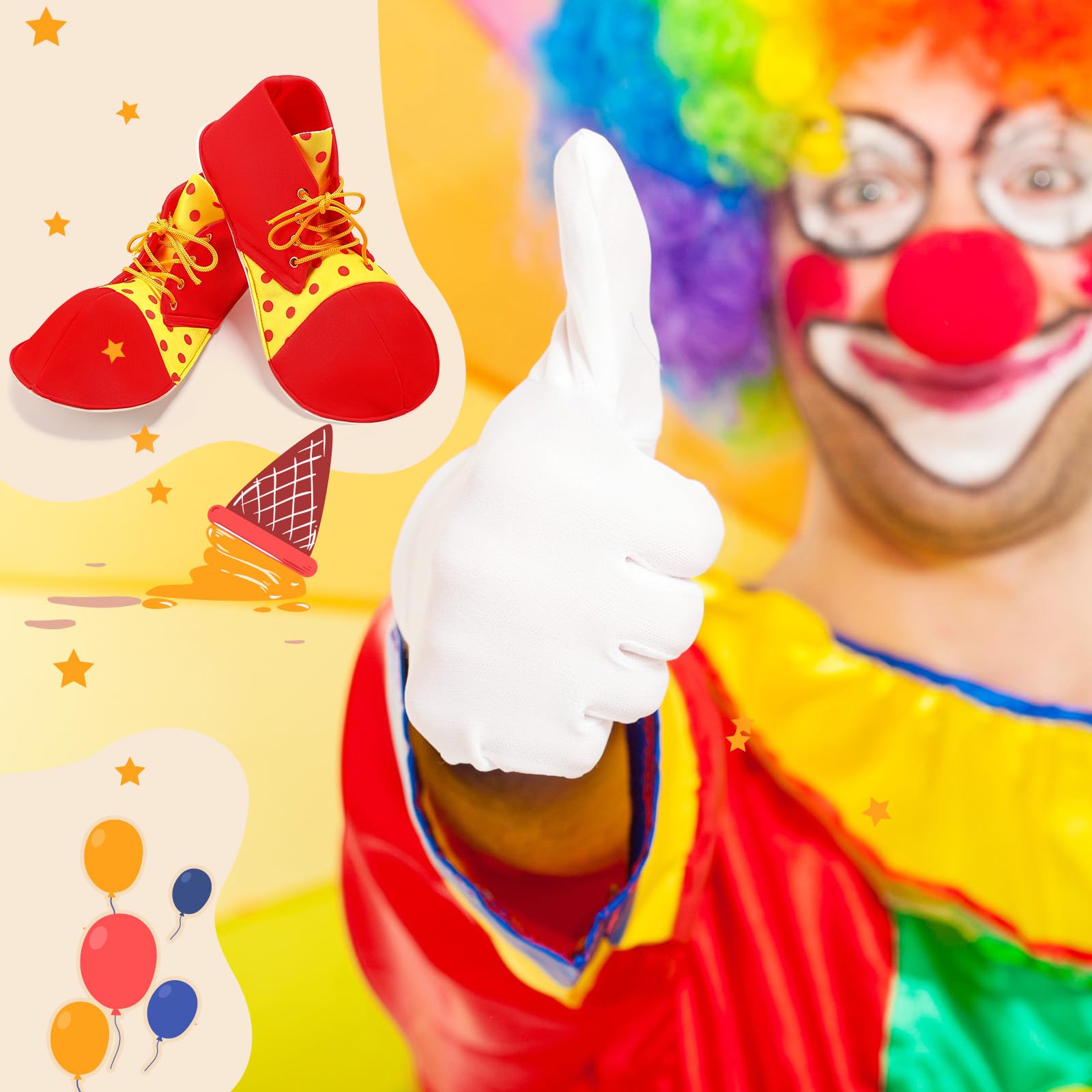 Three-size Dual-wear: red yellow polka dot clown shoes unisex adult three-size fits most feet; Easily worn barefoot or over existing shoes for quick costume changes; No lacing needed—slip-on design saves time during events
