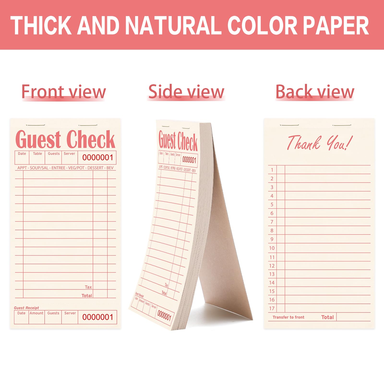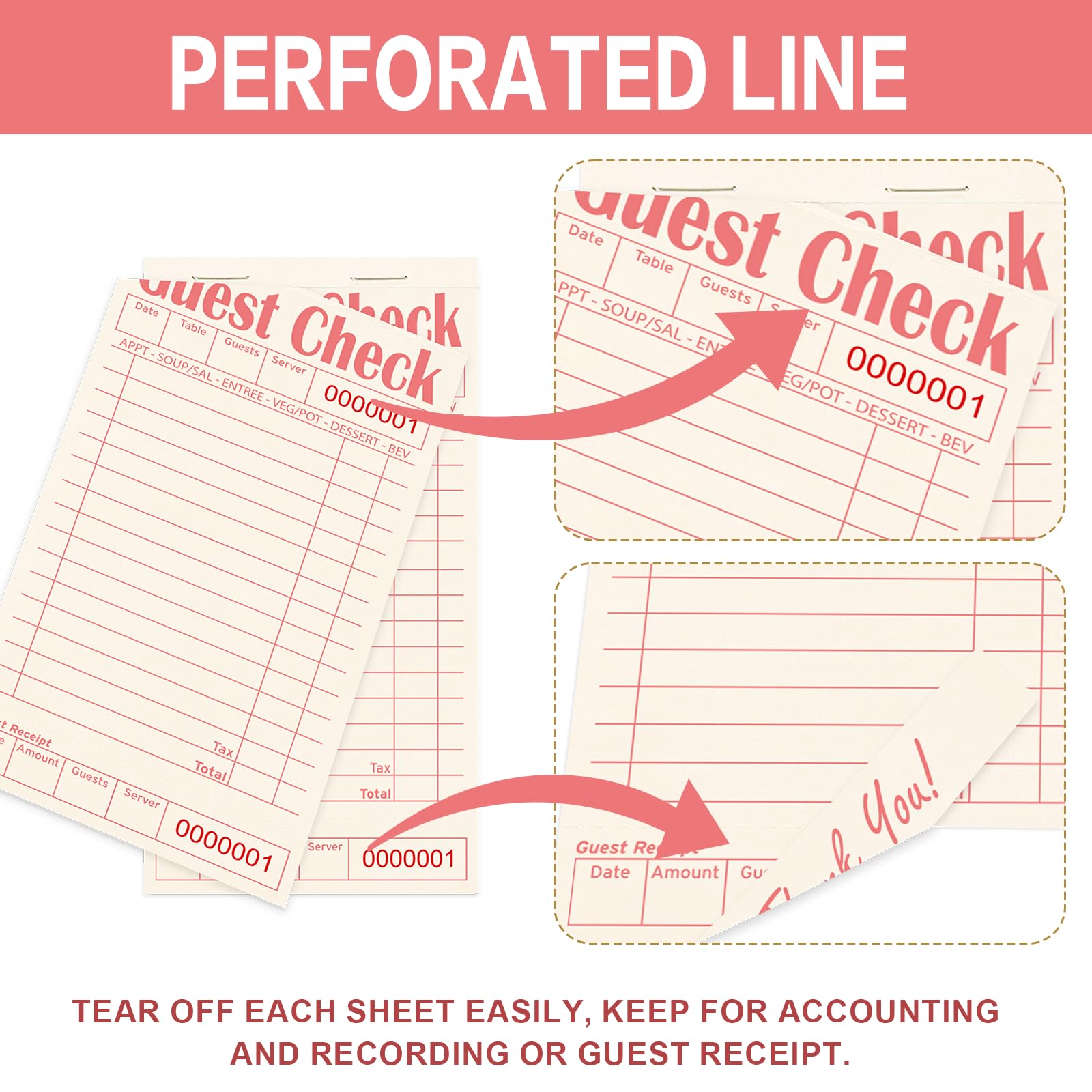 Record Important Information: Each sheet has a unique serial number at the top to reduce errors. And easy to record important information such as date, order details, number of guests, order amount, table number, etc.