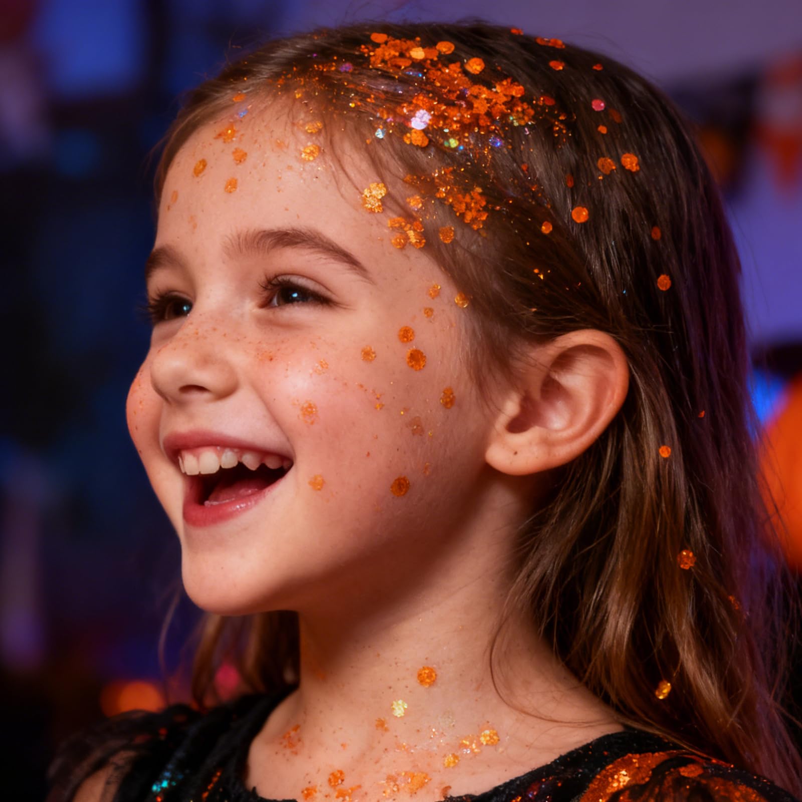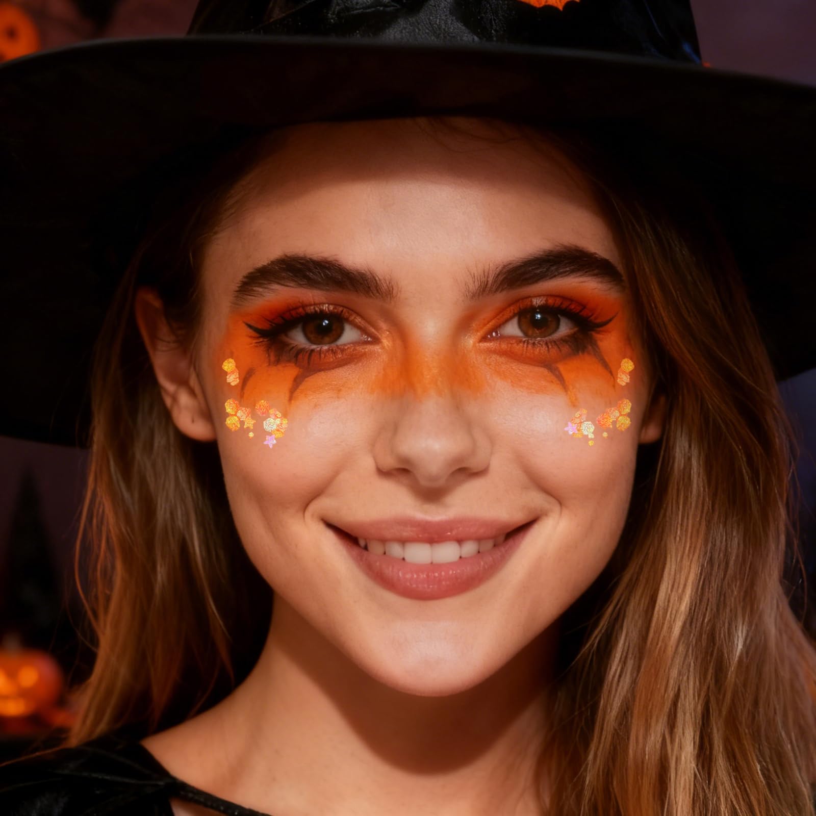 【Makeup Glitter Gel for Body, Face & Hair】The orange body glitter stick with fine glitters and chunky sequins, its color and shine vary in different angles, is great for glitter makeup and hair glitter. It delivers super vibrant and sparkling effect, looks amazing once it hits the light. Wear it to enhance your Halloween makeup.