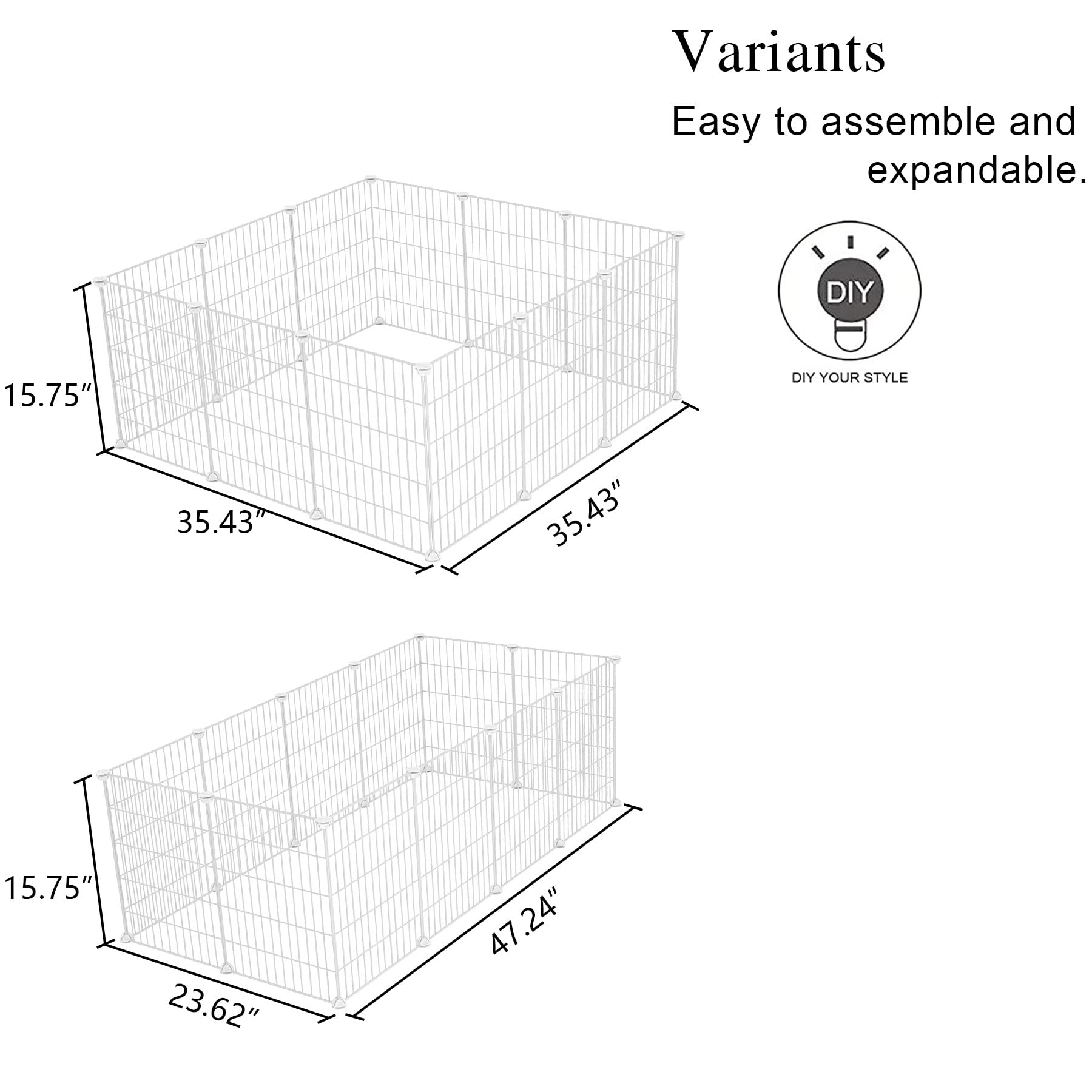 CUSTOMIZABLE DIY ASSEMBLY: 12 panels allow to configure into multiple shapes simply combine the wire panels with the ABS connectors, and you can set up the playpen into different shapes, It's provides for small animals, ensuring that they have enough room for playing and exercising