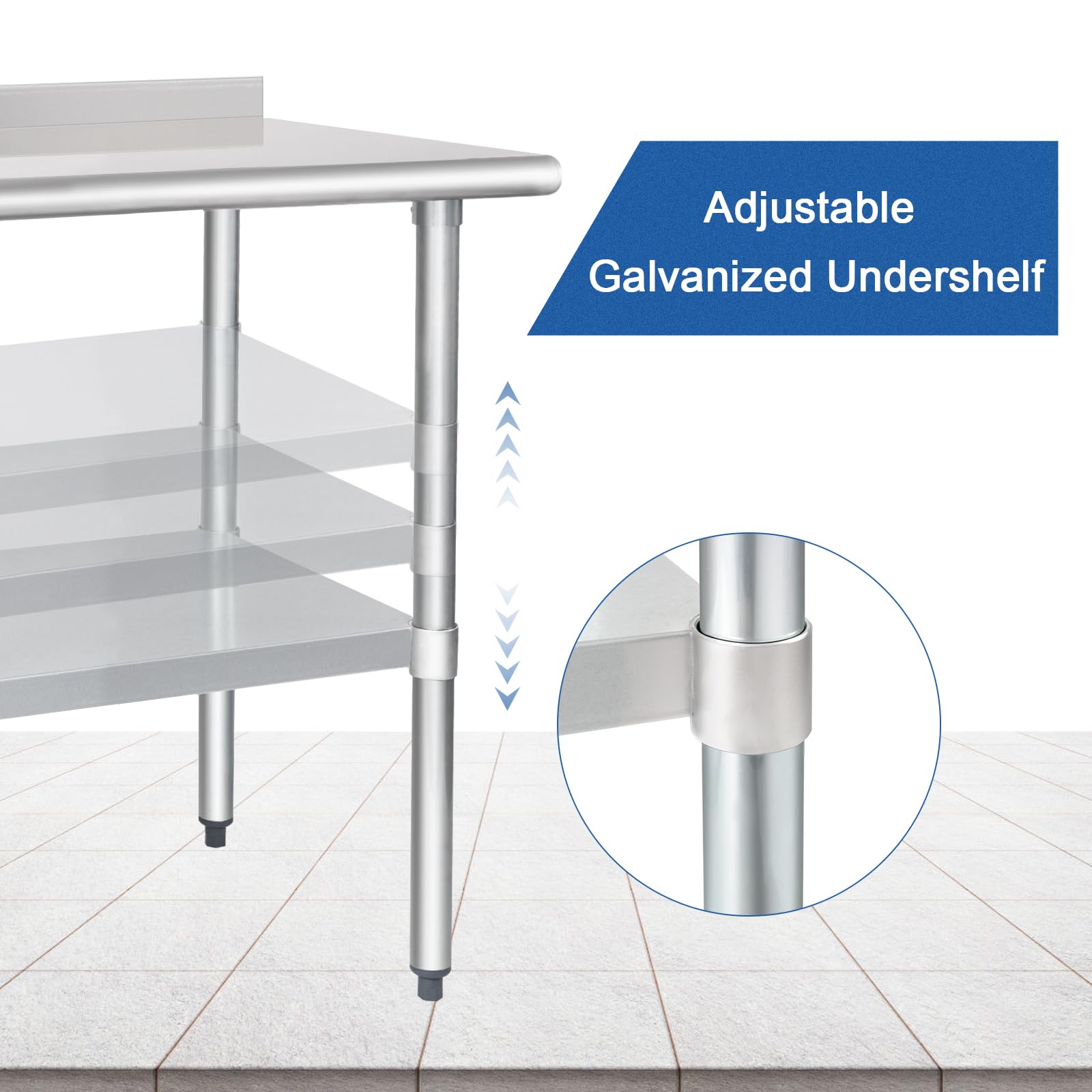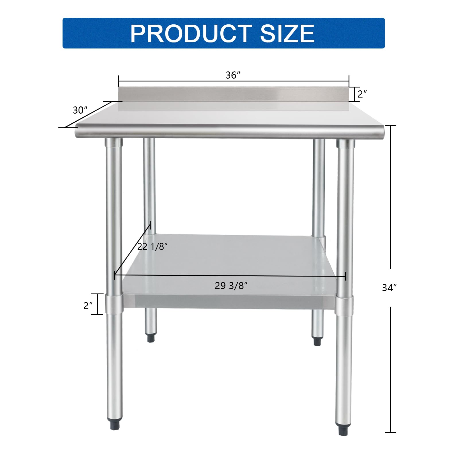 【HIGH QUALITY MATERIAL】- Our safety NSF-certified commercial stainless steel table top shelf is made of durable 18-gauge 430 stainless steel, which is excellent resistant to corrosion and rust. The matel table can withstand the demands of a busy kitchen or industrial setting.
